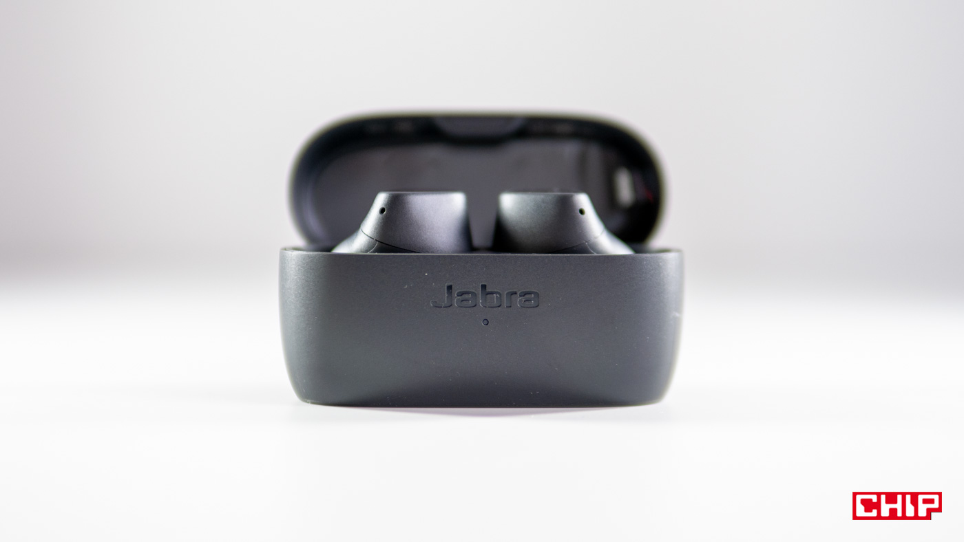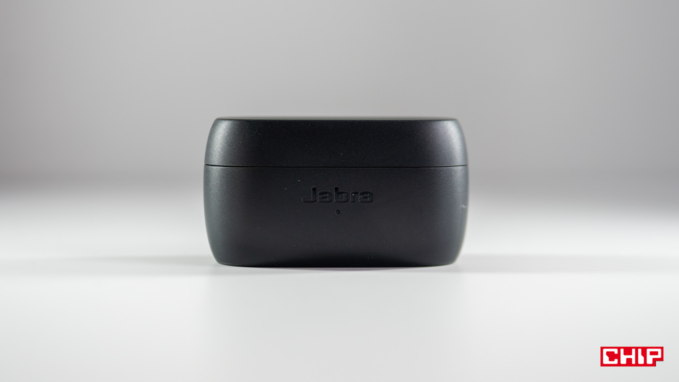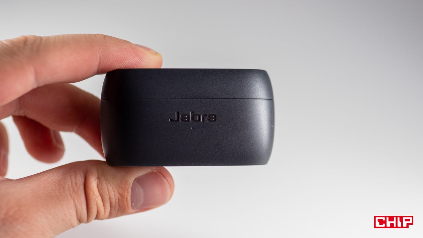 Zaczynając od etui z portem USB-C do ładowania, wygrawerowaną nazwą producenta i diodą funkcyjną, Jabra w tym przypadku niespecjalnie nas rozpieszcza. Forma tej obłej obudowy z płaskimi podstawami i z wbudowanym akumulatorem może i jest jak najbardziej poprawna, ale jej wykonanie nie zachwyca. Etui mieści się w dłoni, czy kieszeni bez problemu (mierzy 64,15 x 28,47 x 34,6 mm i waży 33,4 gramów), jak również pozwala otworzyć się z użyciem jednej ręki i zamknąć szybkim ruchem nadgarstka, ale jego wieczko nie prezentuje sobą najwyżej jakości.
