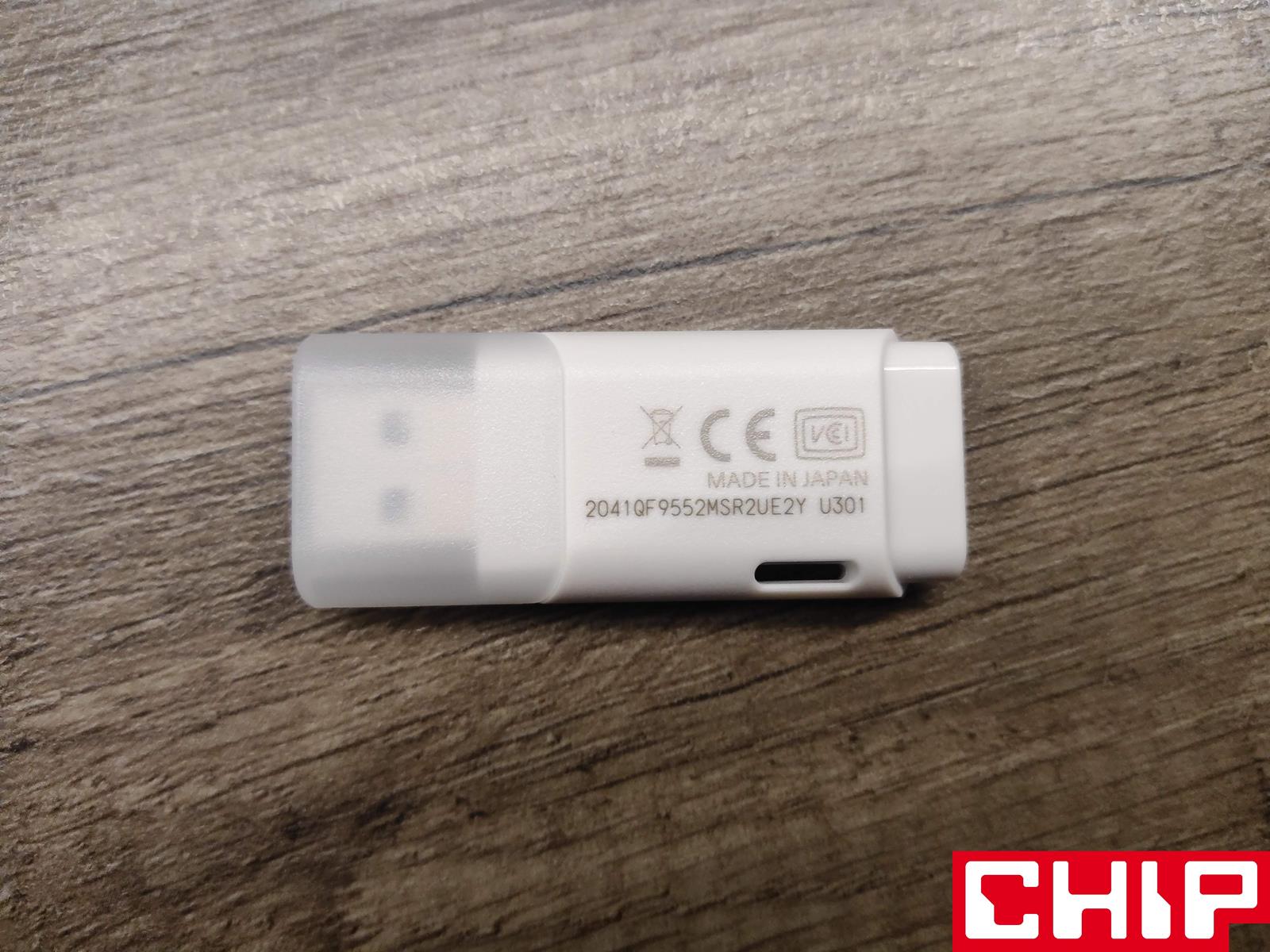 Swoim wyglądem Kioxia TransMemory U301 nie zachwyca i niespecjalnie wyróżnia się na tle innych modeli. To po prostu tradycyjny pendrive o wielkości 51,4 x 21,4 x 8,4 mm wykończony w bieli z szarymi napisami, niewielką luką na przytroczenie go do pęku kluczy i mleczną zaślepką na złącze USB. Waży około 8 gramów, może pracować w temperaturze od 0 do 50 stopni Celsjusza, ale poza tym niestraszne są mu temperatury w zakresie od -20 do 60°C. Producent zapewnia też gwarancję na pięć lat i oferuje U301 w kilku innych wariantach pojemnościowych, bo rzędu 16, 32, 64 i testowanych 128 GB (w rzeczywistości 116 GB).