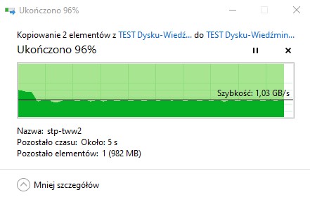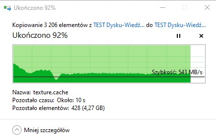 Poniżej możecie podejrzeć to, jak przebiega cały proces kopiowania w dwóch ciekawych przypadkach, które potwierdzają, że bufor dysku jest bardzo skromny i wystarcza na ledwie chwilę.