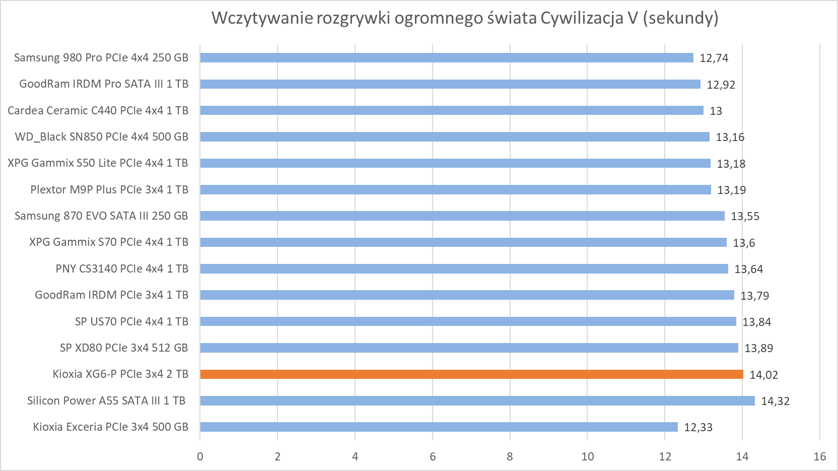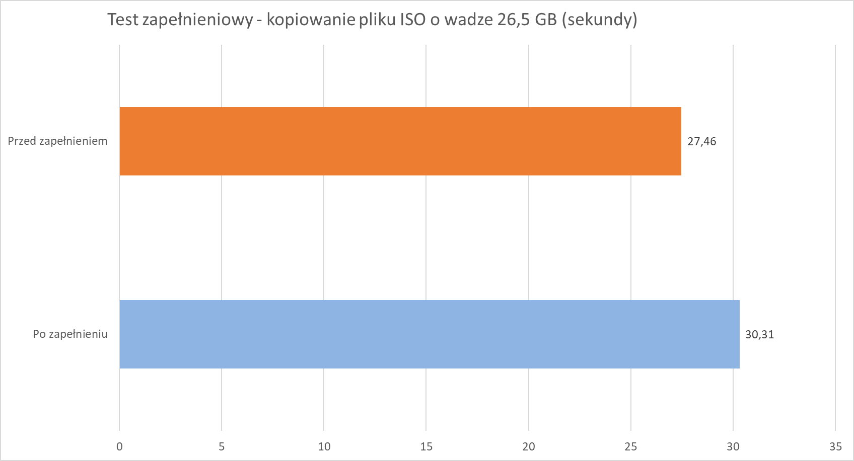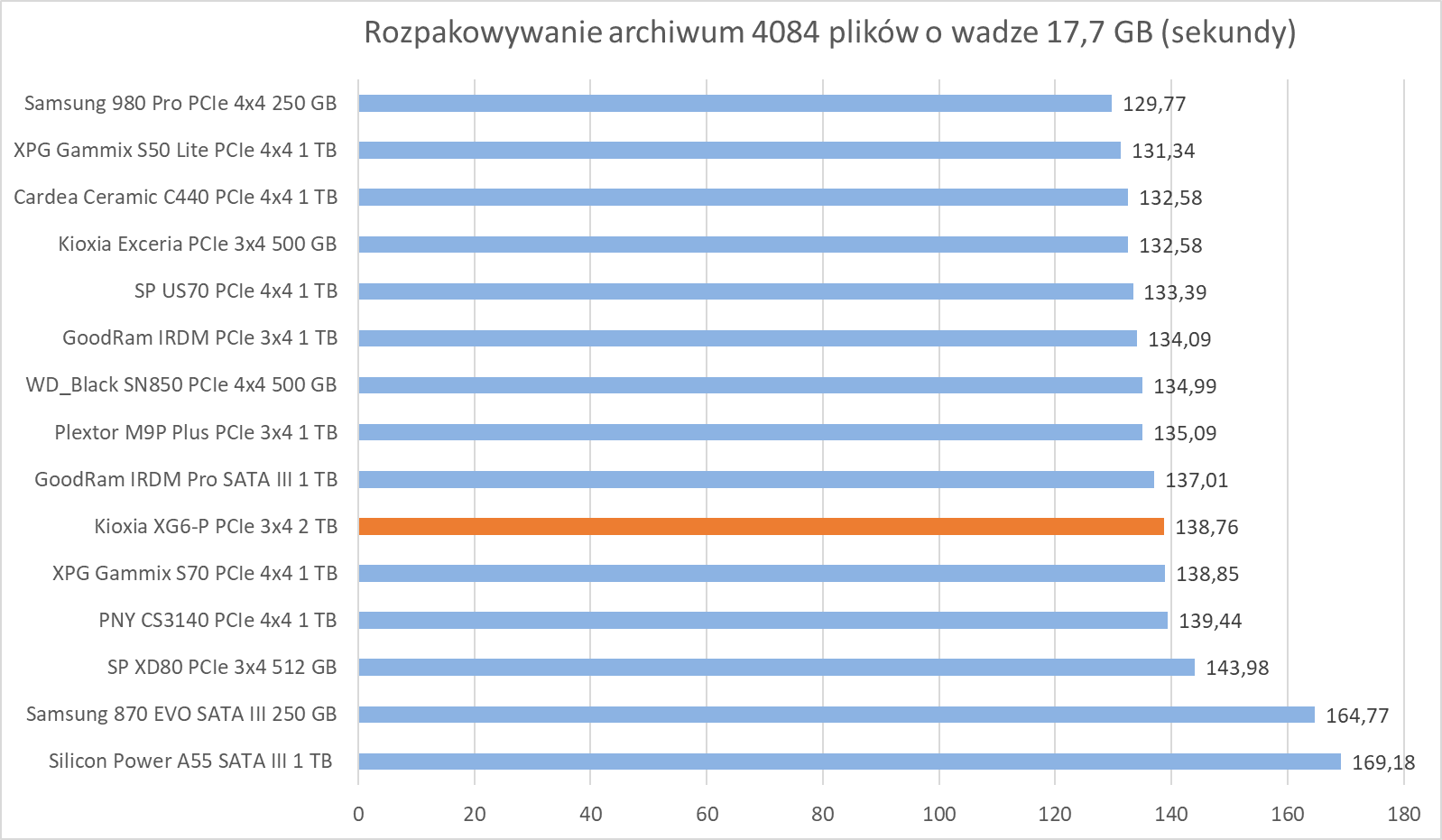 Wybierając do sprawdzianu wielozadaniowości Kioxia XG6-P dwa zadania, postawiłem na kopiowanie plików gry Wiedźmin i archiwizację. Wynik? Wydłużenie kopiowania o 18 sekund i archiwizacji o 15 sekund, co finalnie zaoszczędza nam około 55 sekund.