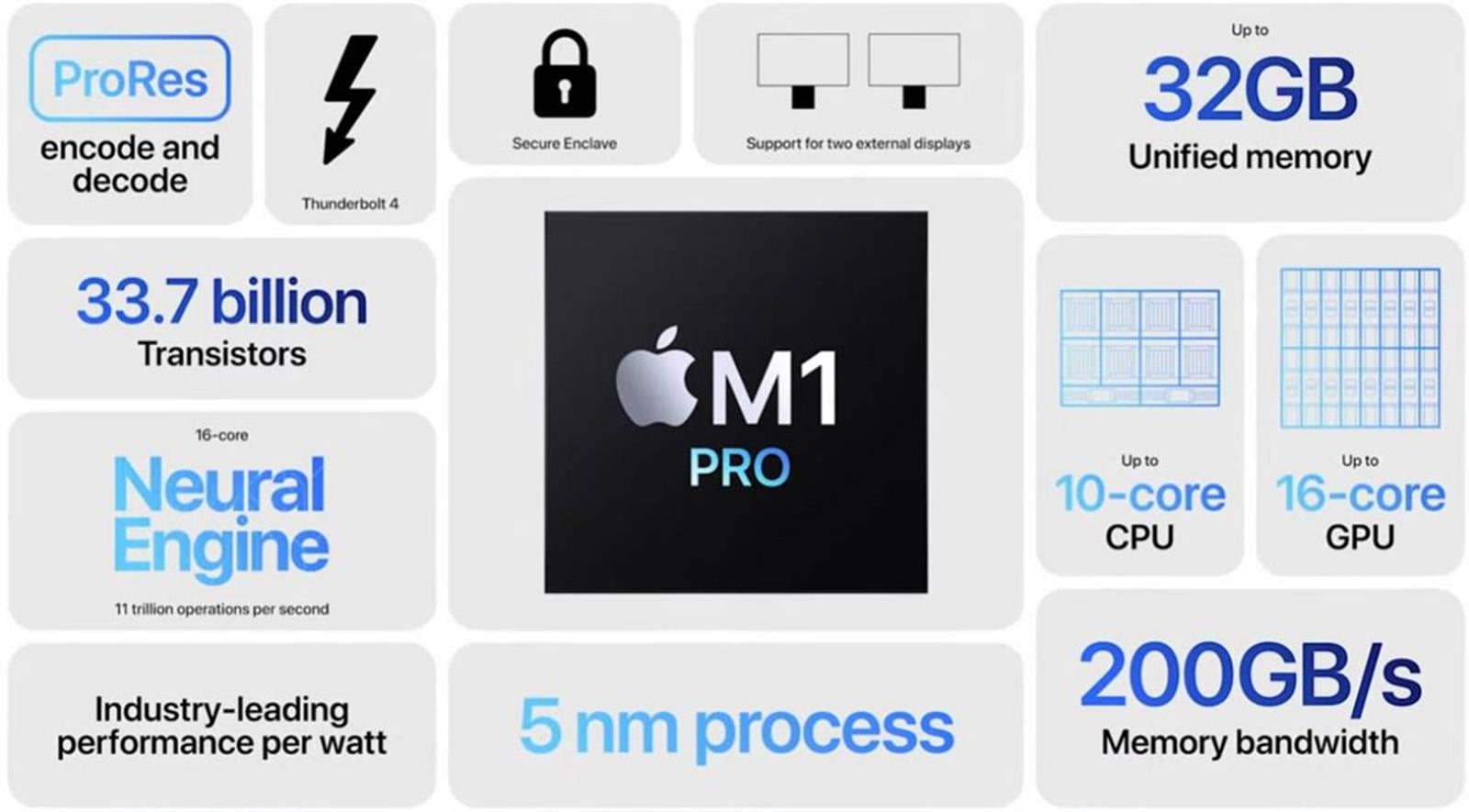 M1 Pro podobno zapewni 4-krotny wzrost wydajności graficznej w porównaniu z oryginalnym M1. Po stronie związanej z CPU można liczyć na wydajność porównywalną do Razer Blade 15 Advanced, którego napędza Intel Core i7-10875H, ale przy jednoczesnym zużyciu energii mniejszym o 40%.