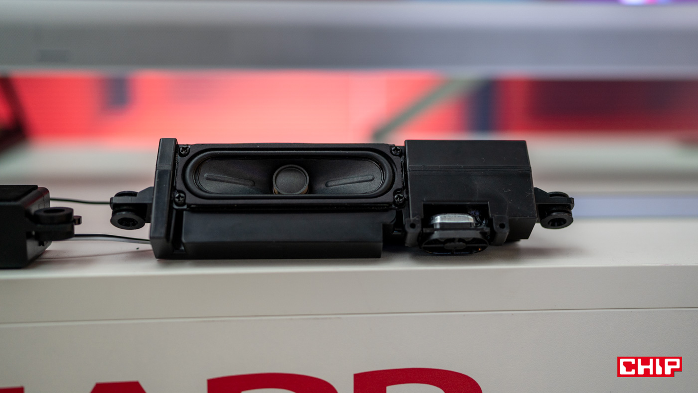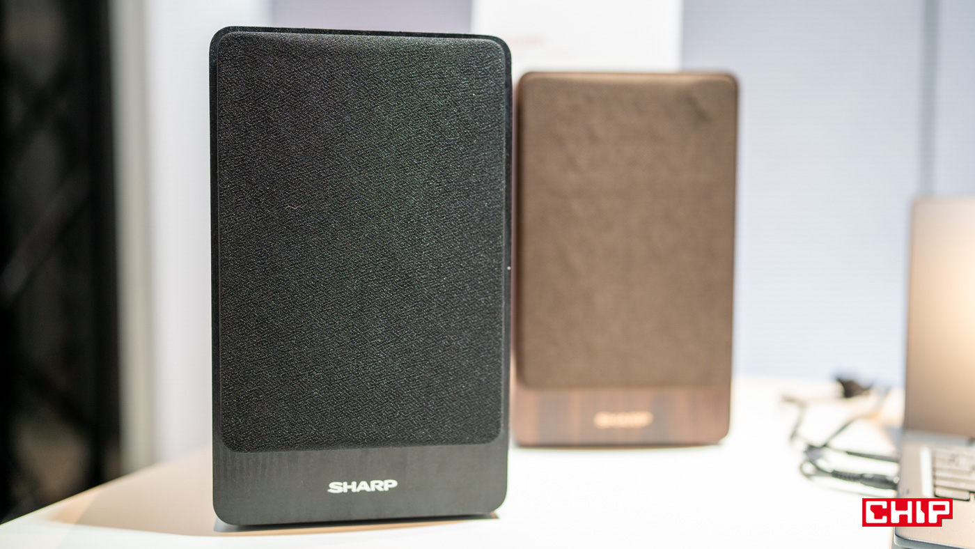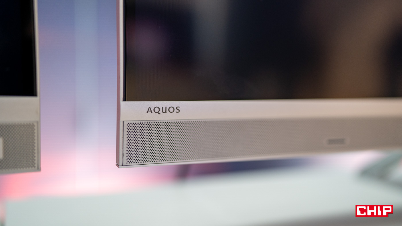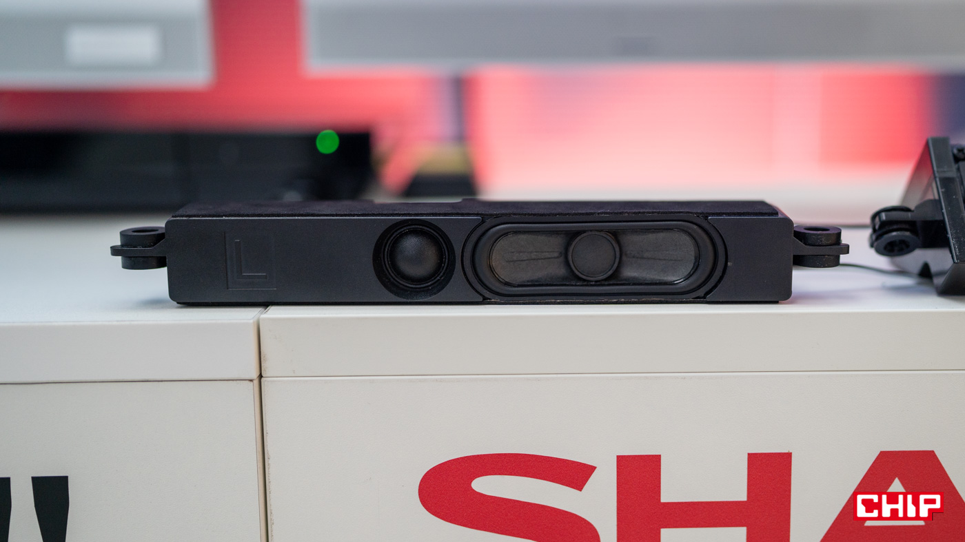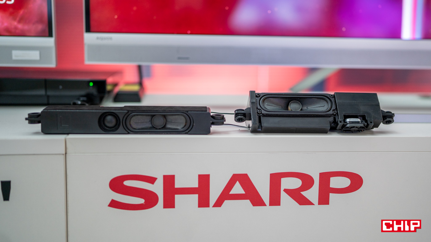 W celu poprawy jakości brzemienia Sharp zastosował większe głośniki o mocy 24 W. Cały układ grający ma większą kubaturę. Jak zapewnia producent, jest on największych spośród tych, jakie spotkamy na rynku. Dodatkowo ważne jest ułożenie głośników. Niskotonowy jest skierowany w dół, a wysokotonowy w kierunku odbiorcy.