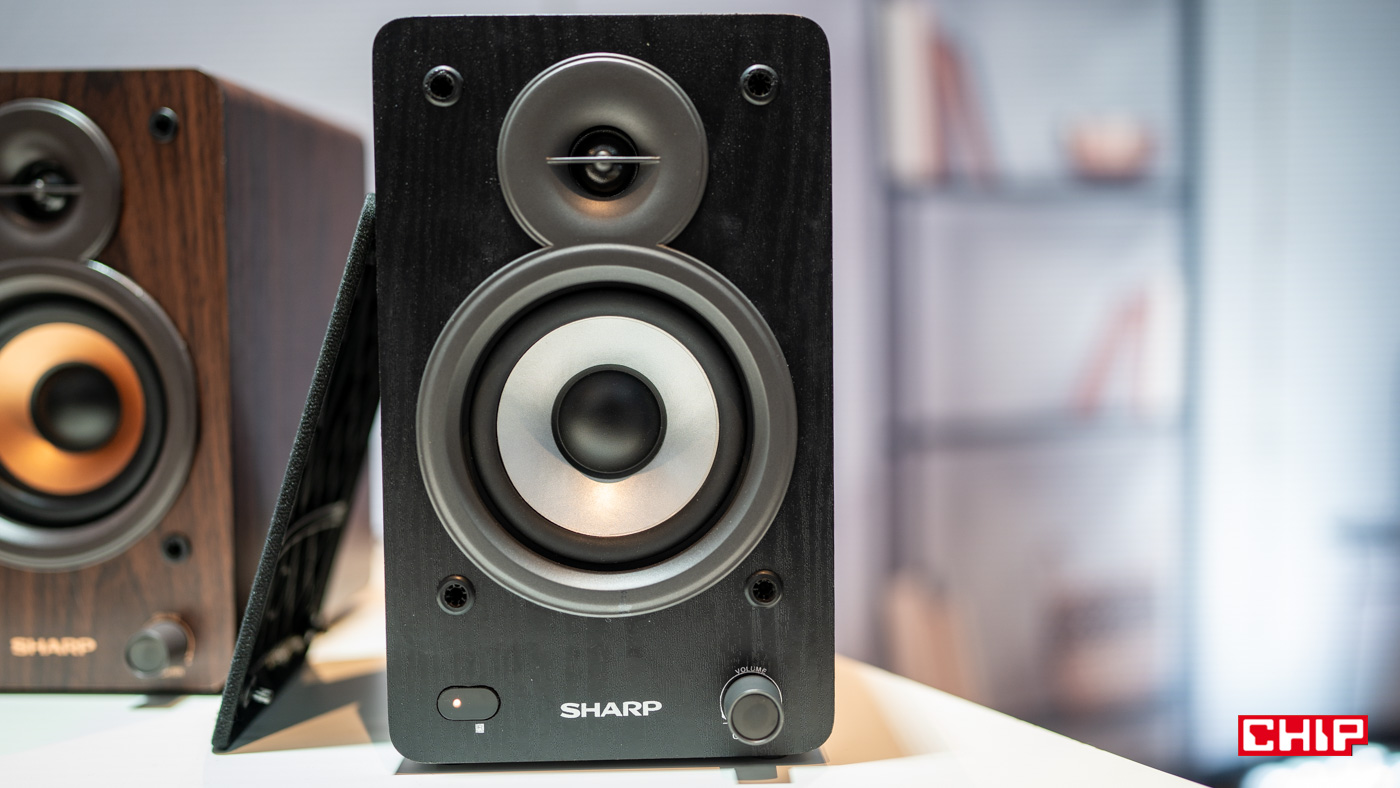 Nie ukrywam, że głośniki CP-SS30 spodobały mi się najbardziej. To 2-drożne, aktywne głośniki o mocy 2x30W i jak zapewnia Sharp, oferują studyjną jakość dźwięku. To podstawkowe głośniki, które można wykorzystać przy komputerze, albo też podłączyć go do sprzętu grającego, np. gramofonu.