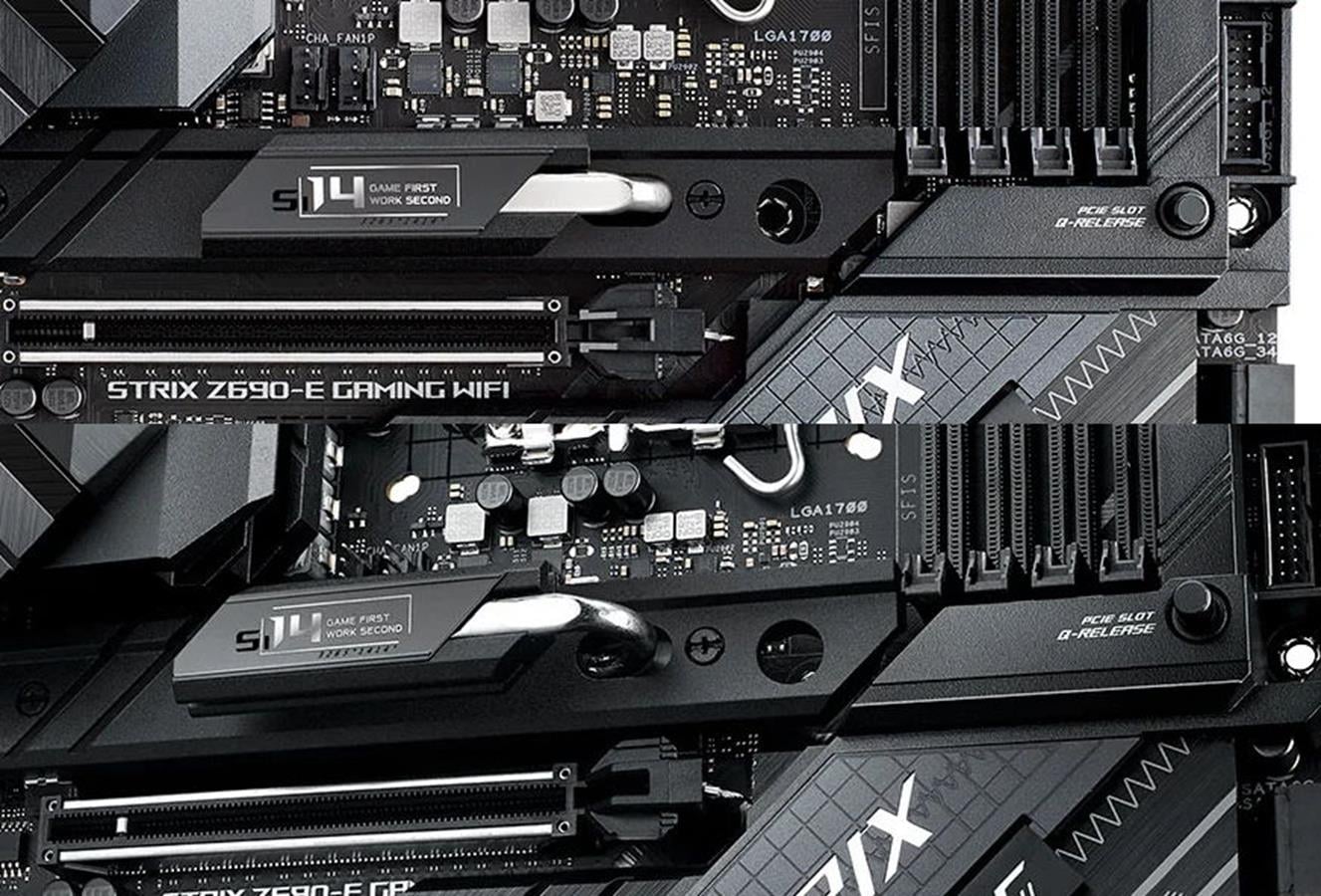 Postarał się też o opis, wedle którego “PCIe Slot Q-Release, to pierwszy taki fizyczny przycisk do odbezpieczenia slotu PCIe jednym klikiem”. Najpewniej trafi on na płyty główne pokroju Z690 ROG Maximus oraz ROG Strix, czyli modele z wyższej półki i z pewnością nie na te w mniejszym formacie. To nie dziwi, jako że tego typu mechanizm zajmuje więcej miejsca i dodatkowo komplikuje cały projekt. W razie jego awarii nie wydaje się jednak, że slotu nie będzie można odbezpieczyć w tradycyjny sposób..