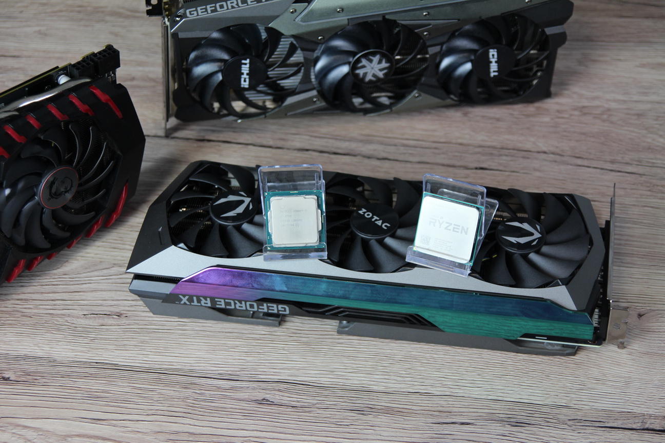 Na platformę testową powędrowały dwa procesory: i7-8700 i Ryzen 7 2700X. Pierwszy debiutował na jesień 2017 roku w cenie 300$ a drugi na wiosnę 2018 w kwocie 329$. Intel mamił jeszcze jednego asa w postaci delikatnie szybszej wersji “K” z MSRP 359$. Procesory zostały przetestowane z bazowymi ustawieniami. Każdy współpracował z modułami pamięci Corsair o taktowaniu 3200MHz i opóźnieniach 16-18-18-36.