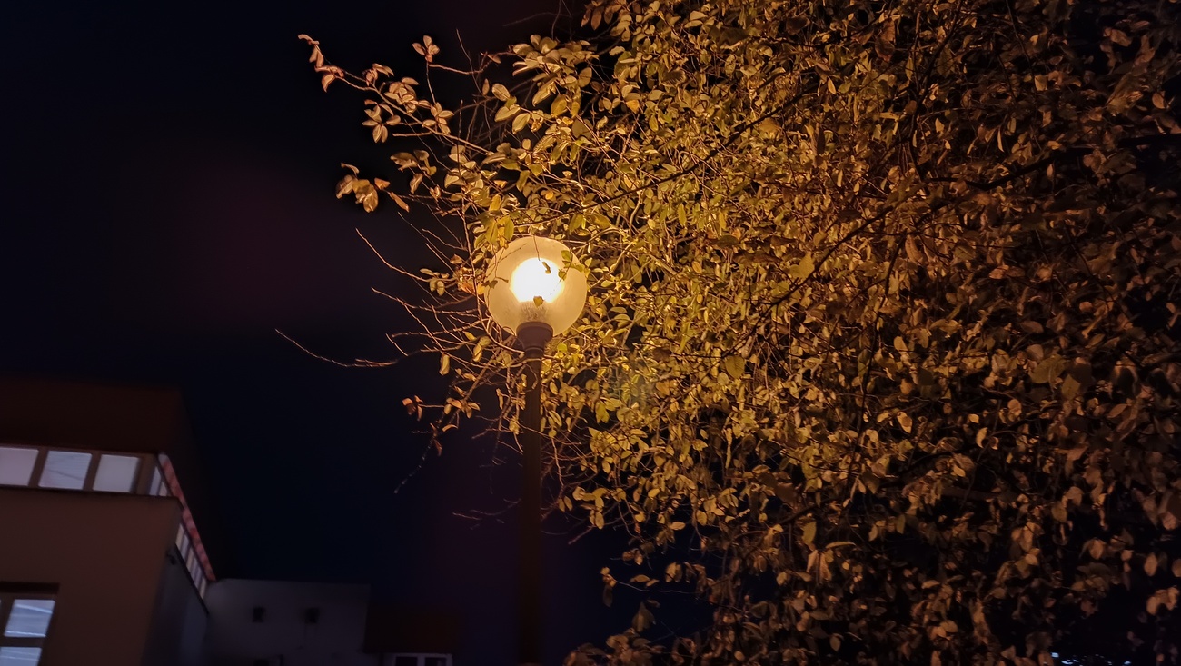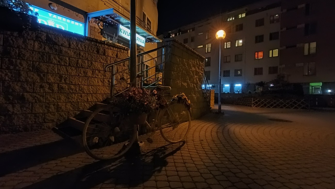 Aparat główny naprawdę dobrze radzi sobie po zmroku. Zdjęcia mają sporo detali i zachowują kontrast i szczegóły w cieniach. Jasne, pojawiają się szumy a ogólna liczba detali jest zauważalnie mniejsza niż za dnia, ale wszystko jest trzymane tu pod kontrolą. Jeśli skorzystamy z obiektywu szerokokątnego to ujęcia będą niestety wyraźnie ciemniejsze i zdecydowanie mniej szczegółowe. W obu przypadków trzeba uważać na mocne źródła światła, żeby uniknąć efektu flary.