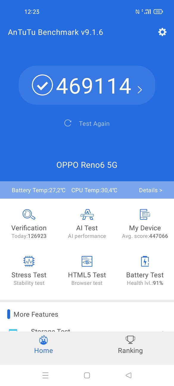 - Antutu Benchmark 9.1.15 – 469 114 pkt