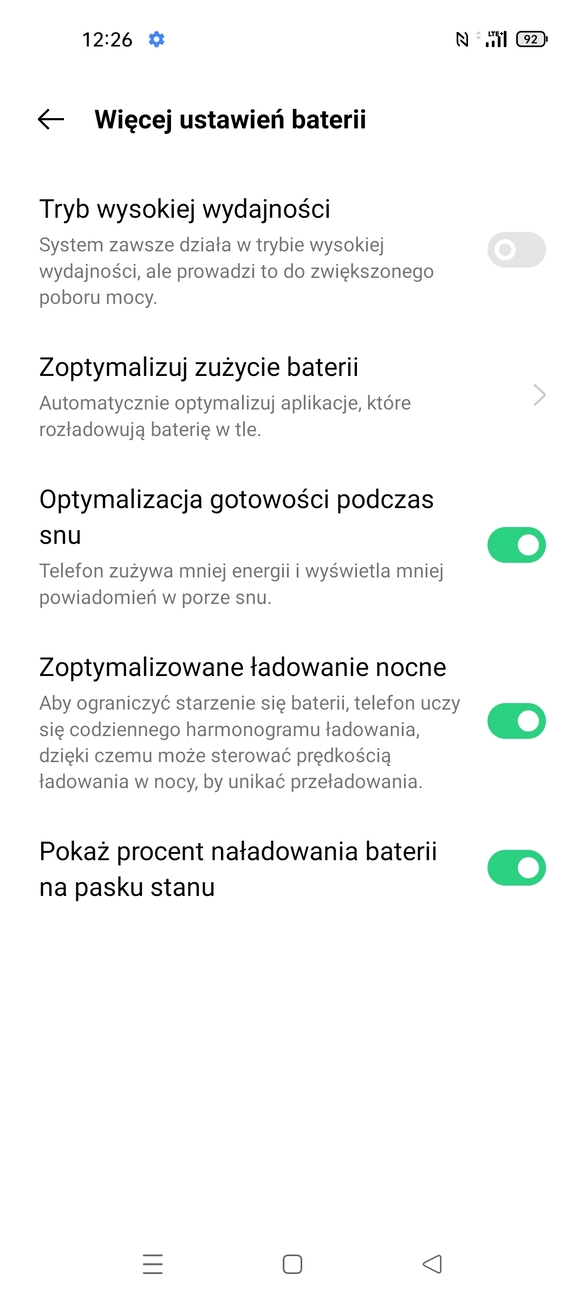 Z dostępnych udogodnień znajdziemy więc m.in. rozbudowaną obsługa gestów czy możliwość nagrywania naszych poczynań na ekranie (wraz z dźwiękiem). Jest też Przestrzeń Gier, która w założeniach optymalizuje ich wydajność. Nie zapomniano również o trybie ciemnym dla menu oraz konfigurowalnym Always On Display. Niestety, jest też dużo preinstalowanych aplikacji firm zewnętrznych, które trochę zaśmiecają system.