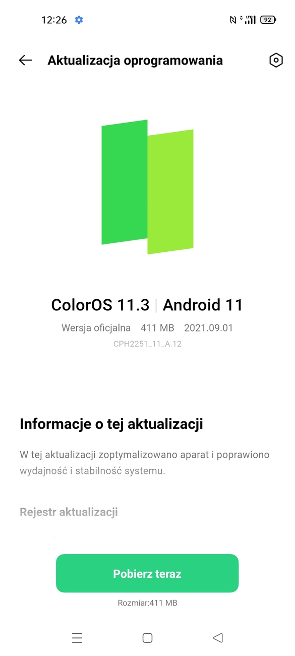 Oppo Reno6 5G pod kontrolą Androidzie 11 wraz z nakładką ColorOS 11.3. Jest więc czytelnie, kolorowo i funkcjonalnie, a co najważniejsze – płynnie. Wszystko wygląda tu i działa niemalże identycznie jak w droższym Oppo Reno6 Pro 5G, którego miałem już okazję testować.