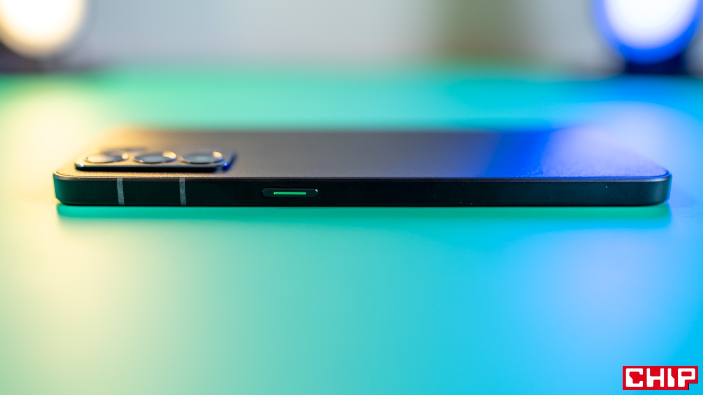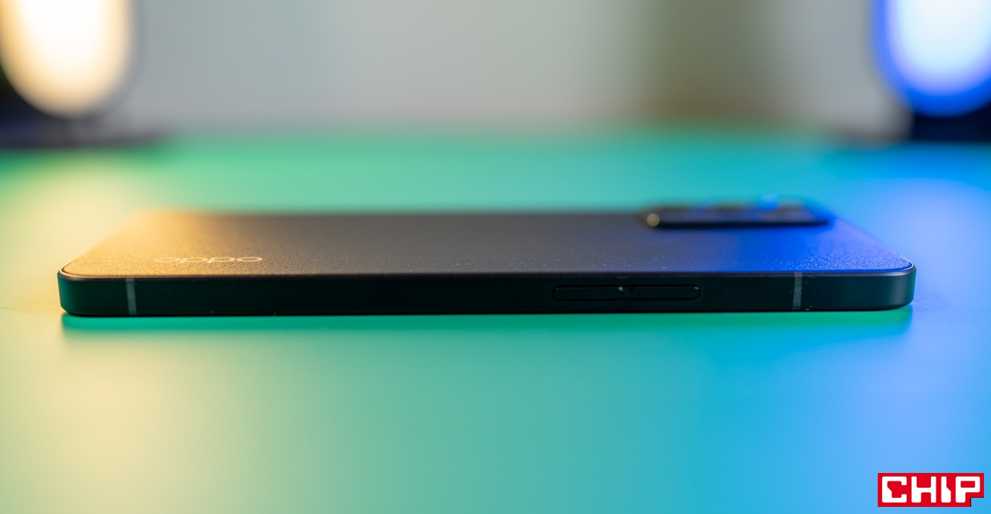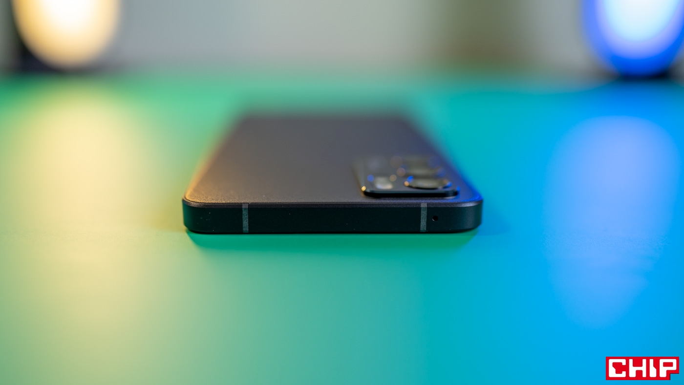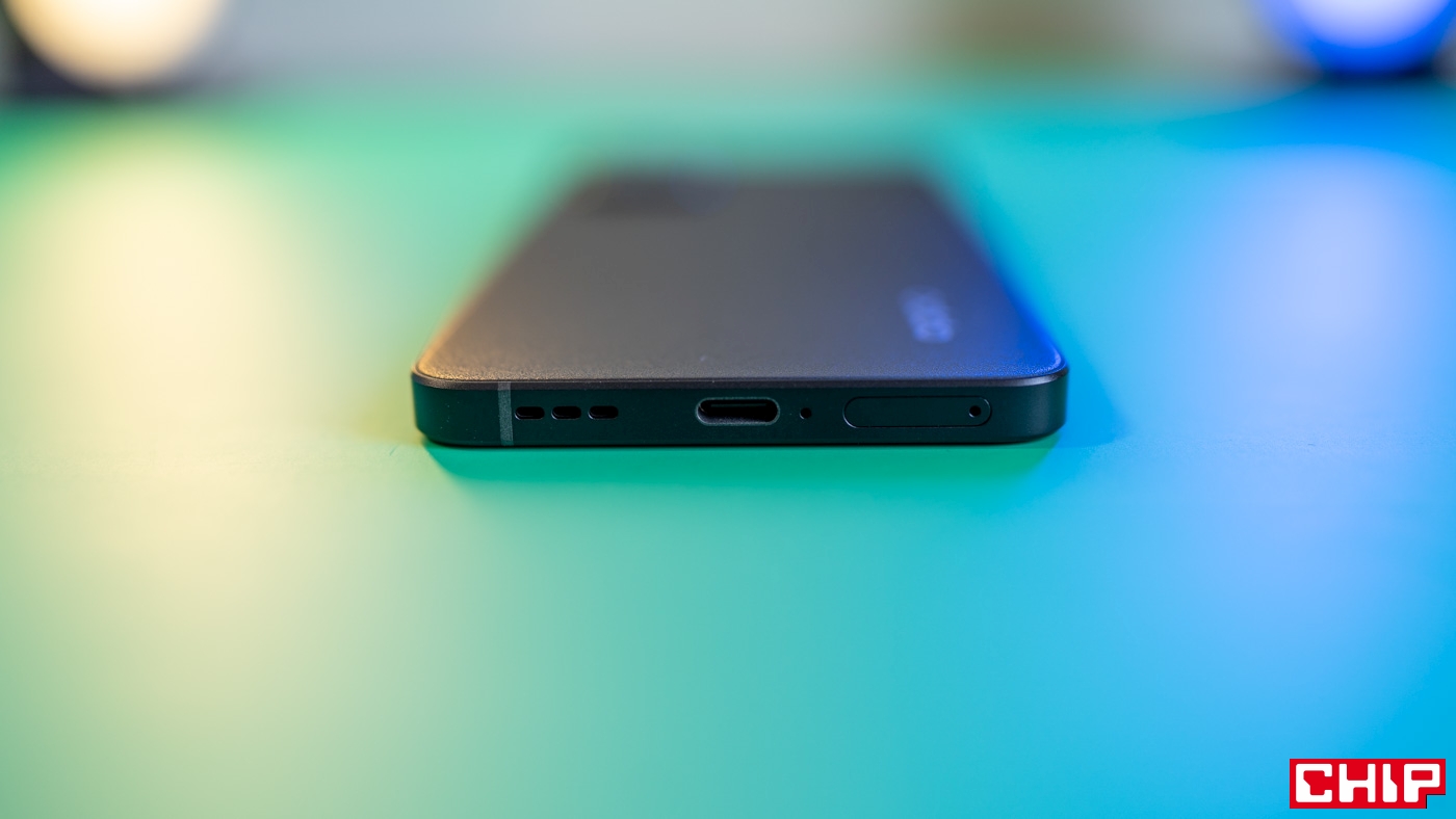 Głośnik monofoniczny, port USB C oraz tackę na karty nanoSIM znajdują się u dołu ramki. Przyciski regulacji głośności po lewej stronie, natomiast przycisk on/off – po prawej. Ma on dodatkowo zieloną linię, dzięki której jest lepiej widoczny, a ponadto staje się małym smaczkiem stylistycznym.