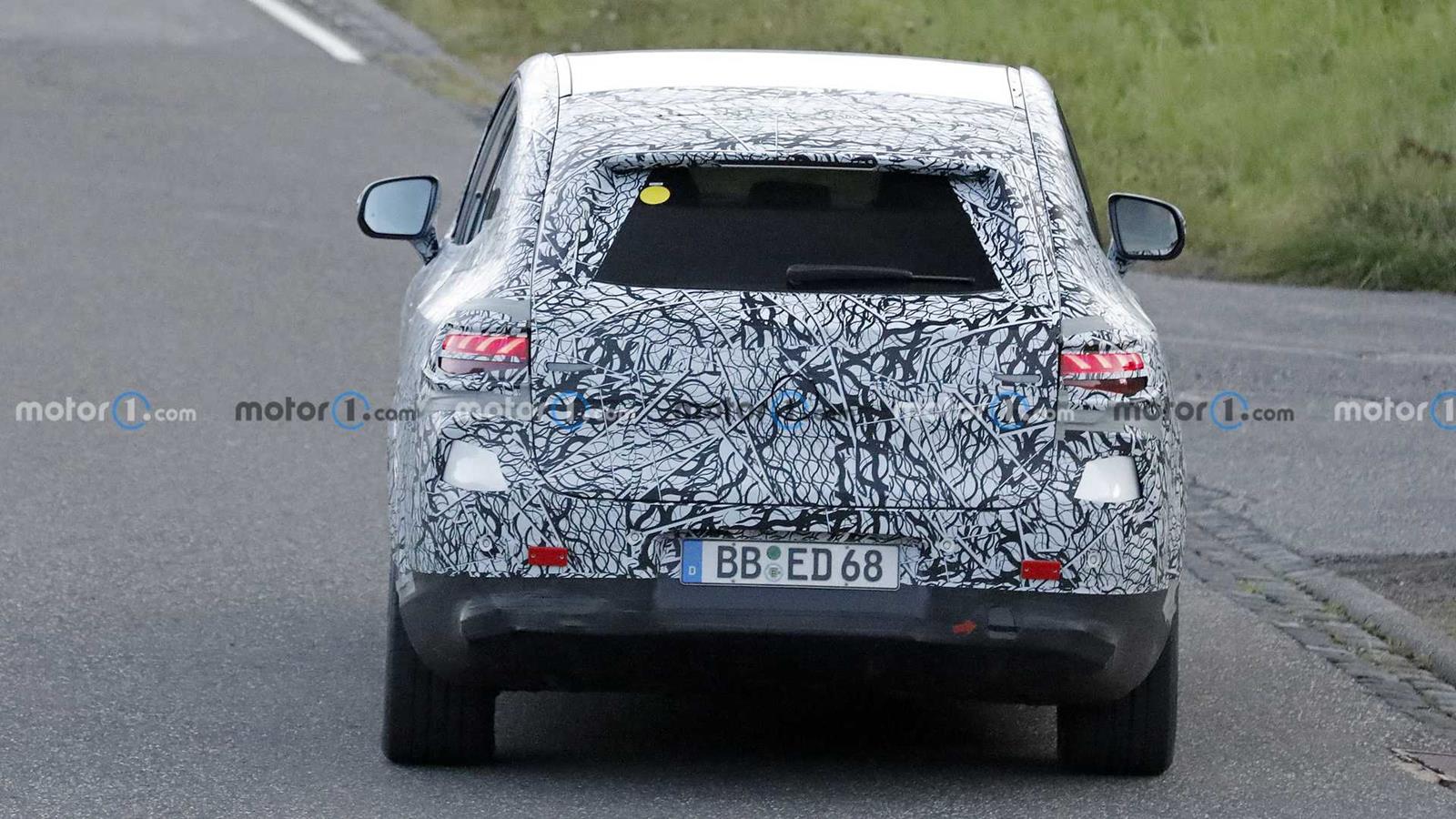 Chociaż sam kamuflaż ukrywa wiele, to już na pierwszy rzut oka łatwo rozpoznać zamkniętą osłonę chłodnicy, połączoną wizualnie ze światłami LED do jazdy dziennej. Na samym środku tego zamkniętego panelu znalazło się wielkie koło, które zapewne zasłania logo producenta. To finalnie będzie miało zapewne kamerę zintegrowaną w dolnej części, podczas gdy na samym zderzaku znajdą się kolejne czujniki parkowania.