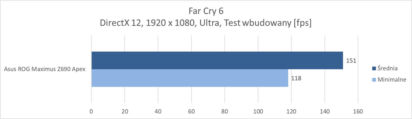 Na koniec przeprowadziłem testy w trzech grach: Far Cry 6, Shadow of the Tomb Raider oraz Metro Exodus Enhanced Edition. Testy wykonałem w rozdzielczości 1920 x 1080 px przy ustawieniach kolejno: Ultra, Najwyższe i Ultra. W przypadku Metra ustawienia RT pozostawiłem domyślne (RT: High, Reflections: Hybrid), a DLSS wyłączony. W pozostałych grach RT, DLSS czy FSR pozostały wyłączone. Testy przeprowadziłem przy wykorzystaniu wbudowanych w gry benchmarków.