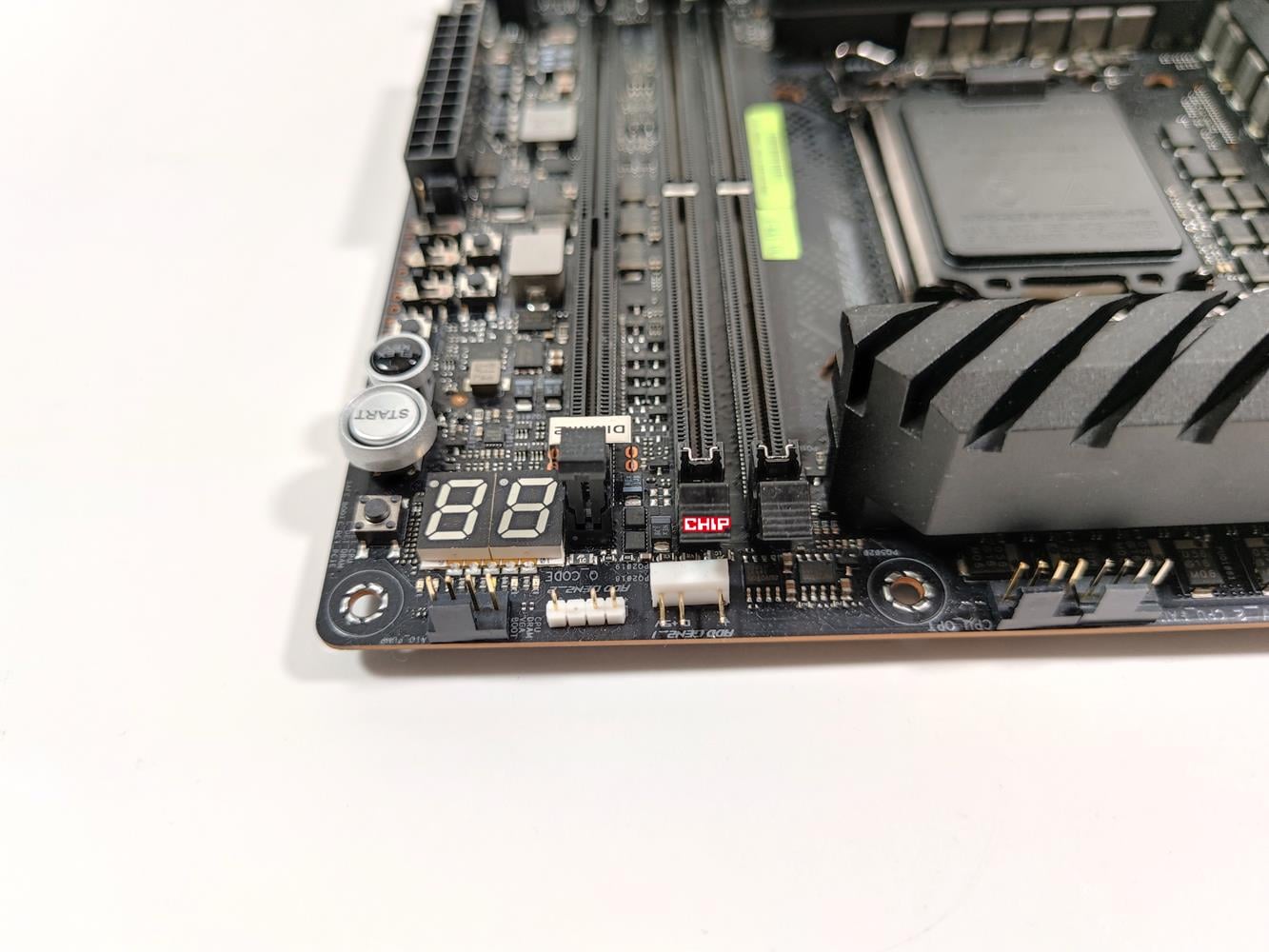 Ilość naprawdę robi wrażenia i pozwala na podłączenie praktycznie wszystkiego czego chcecie. Rozmieszczenie złączy jest bardzo dobre i np. górne ARGB jest nawet kątowe co ułatwi montaż kompatybilnego podświetlenia. Poza tym na płycie nie brakuje kompletnie niczego i taka konfiguracja jest naprawdę świetna. Na Asus ROG Maximus Z690 Apex znajduje się też wyświetlacz kodów POST, dzięki któremu łatwiej zdiagnozujecie ewentualne problemy z komputerem.