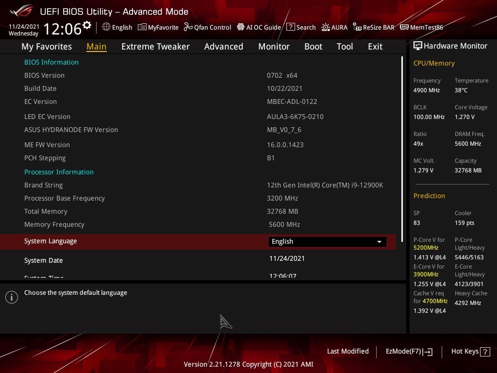 BIOS Asus ROG Maximus Z690 Apex