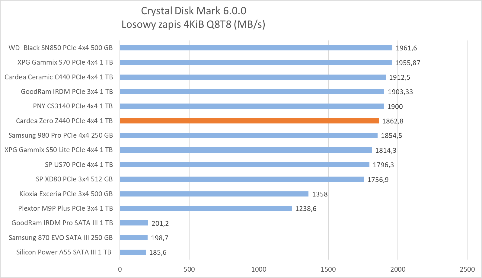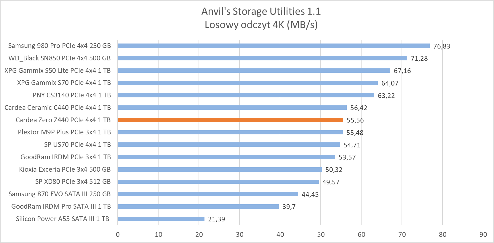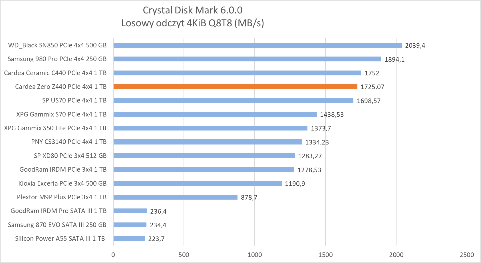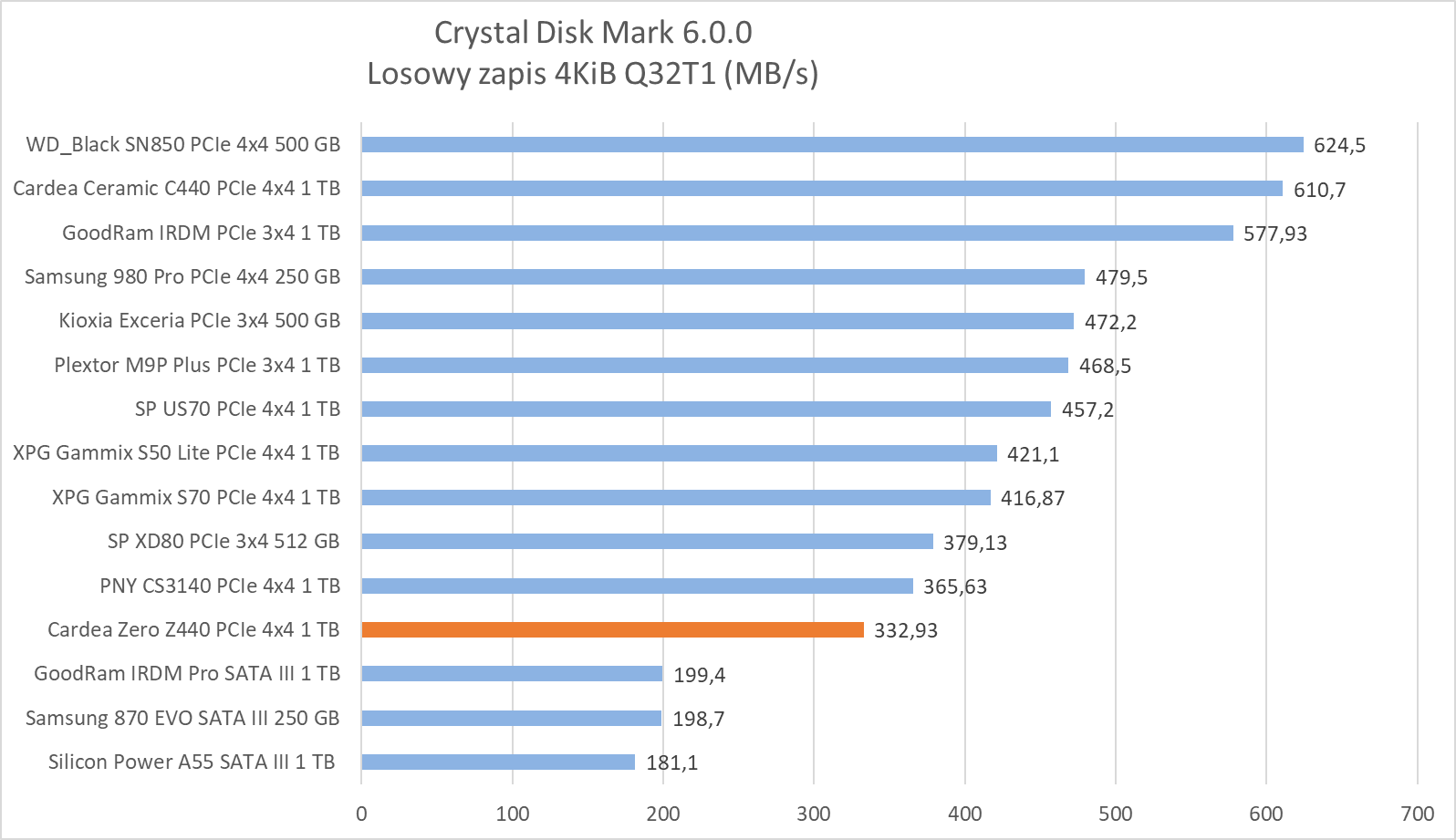 Nasza baza danych obejmuje już sześć dysków w tej konfiguracji (wliczając dziś testowany). Na ich tle Cardea Zero Z440 wypada zadziwiająco dobrze zwłaszcza przy operacjach zapisu. Odczyt wypada z kolei oczekiwanie.