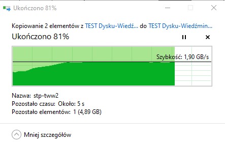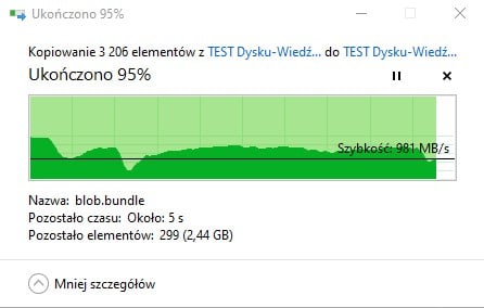 Zanim przejdziemy do wykresów, rzućcie proszę na wykres kopiowania zarówno plików gry Wiedźmin 3, jak i pojedynczego wielkiego pliku .ISO:
