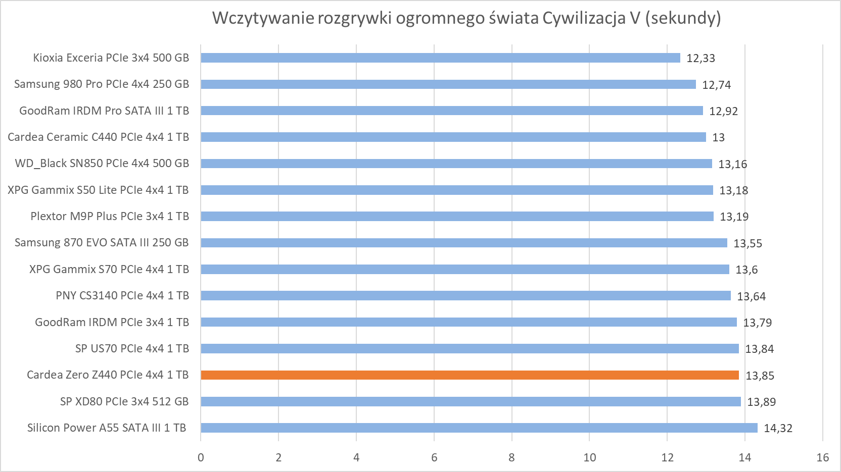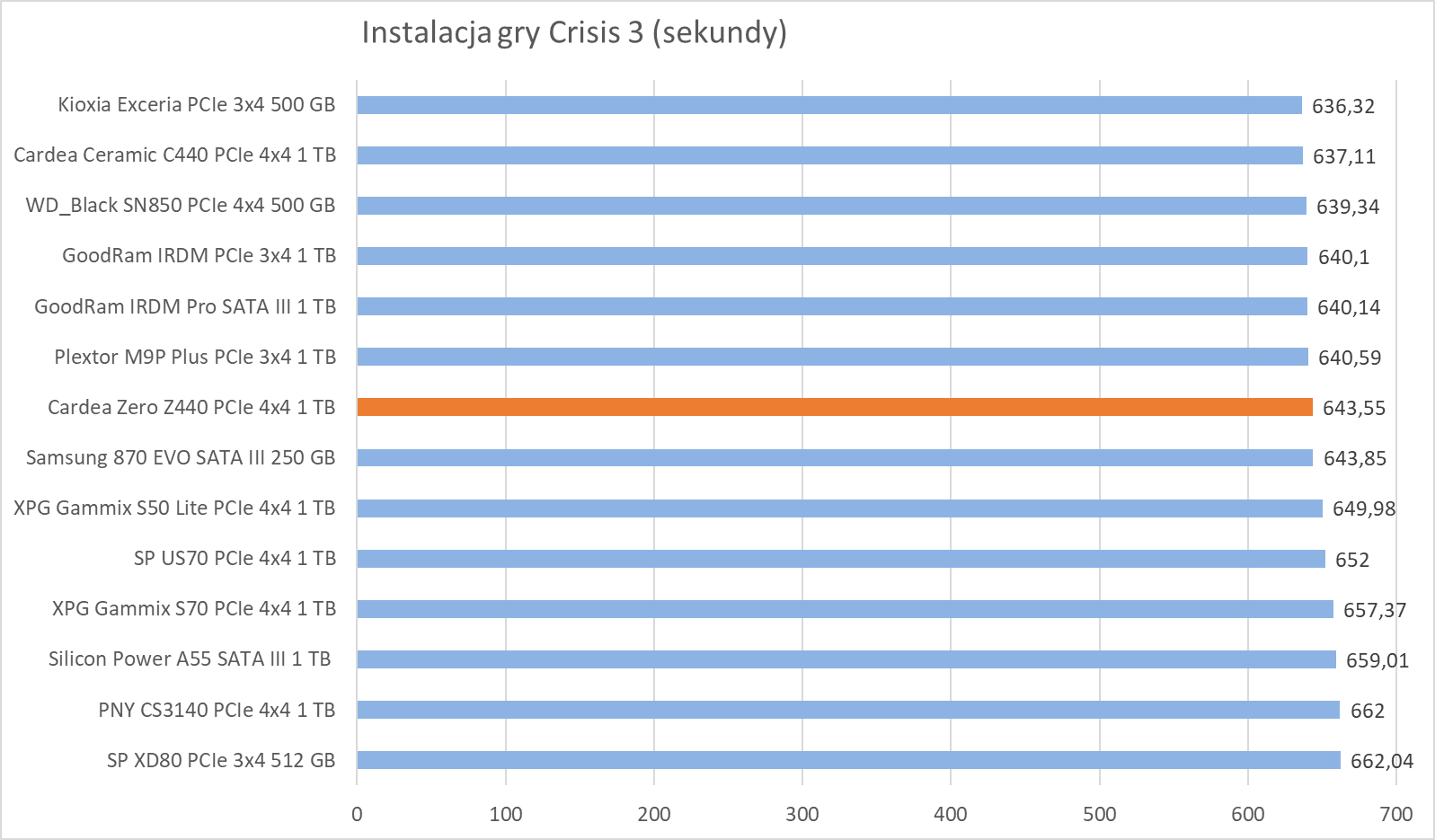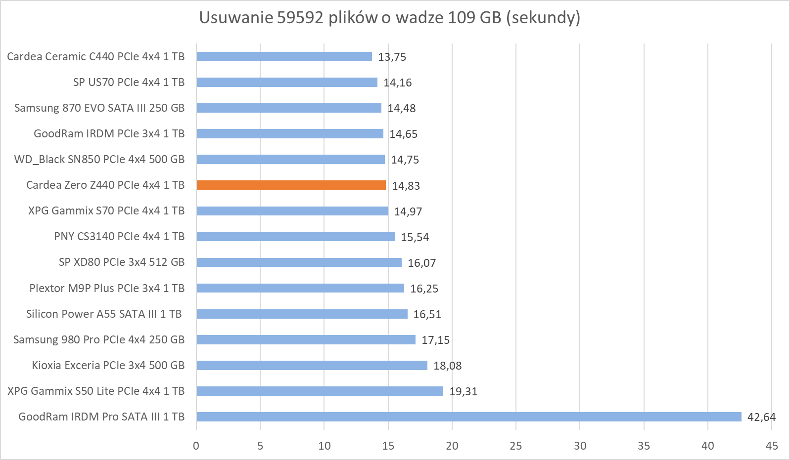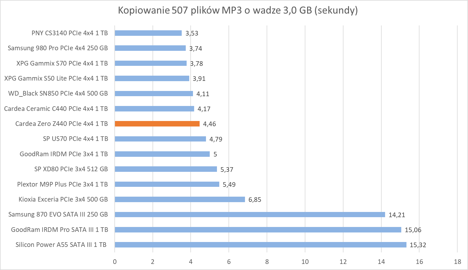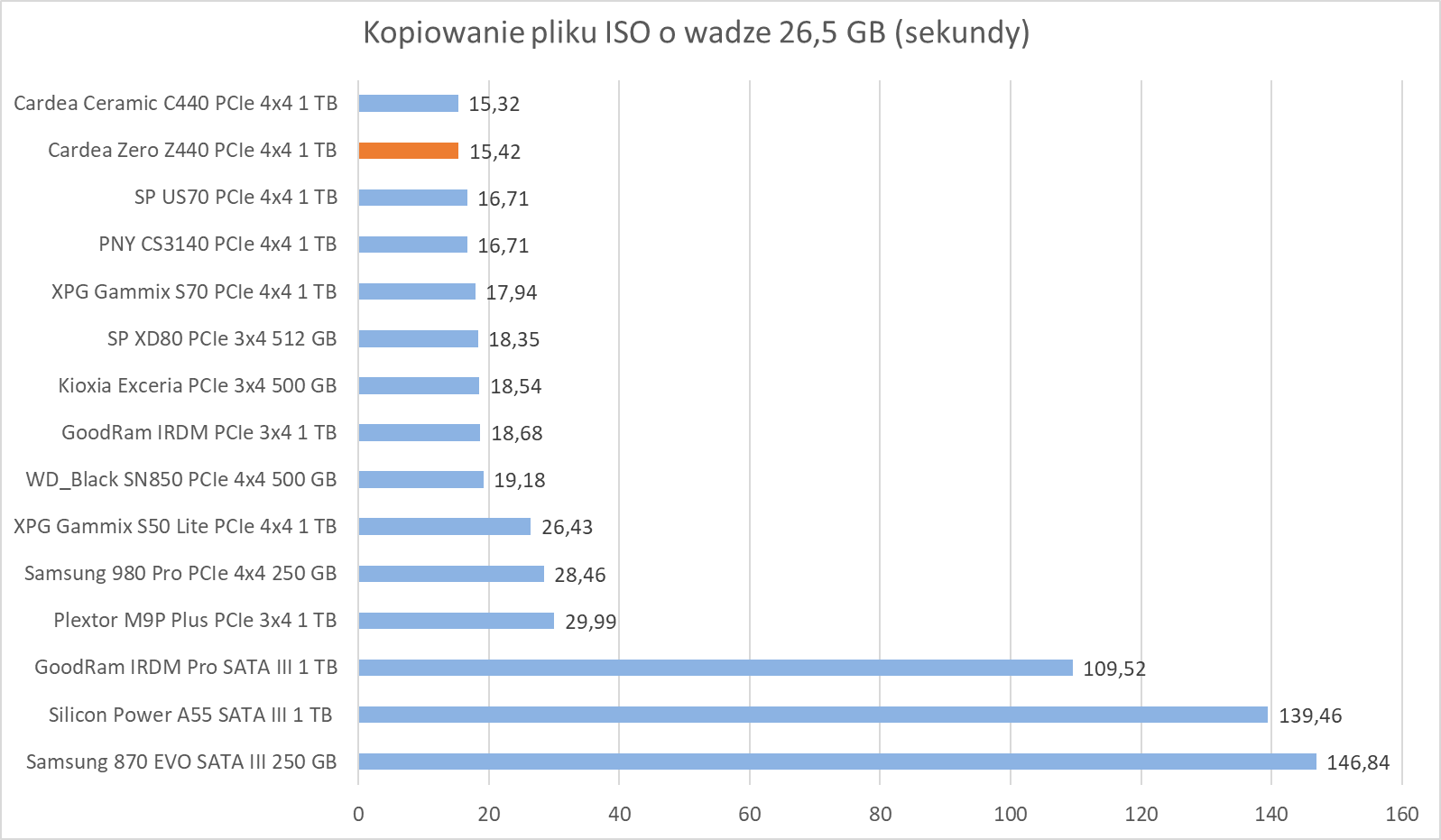 W programach i grach Cardea Zero Z440 łapie jednak czkawkę, zaliczając dobre wyniki wyłącznie przy archiwizacji. Różnice są jednak na tyle niewielkie, że na tle kopiowania ten dysk T-Force wypada świetnie pod kątem ogólnej jakości.
