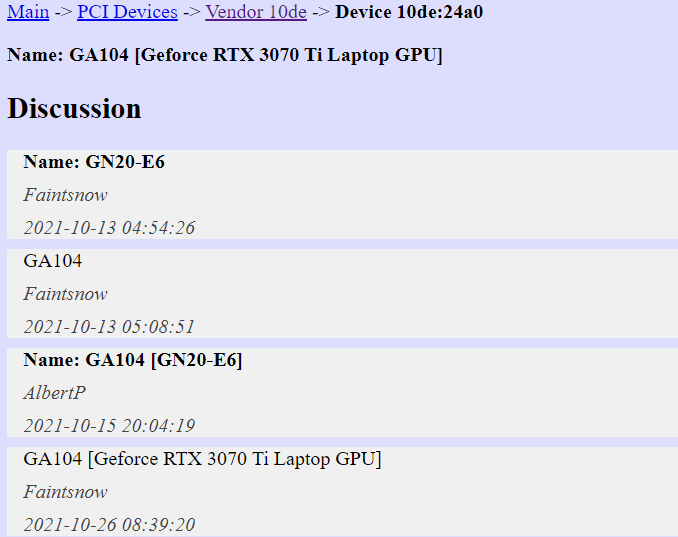 Podobnie sprawa ma się z świeżutkim w myśl wycieków GeForce RTX 3070 Ti Mobile, który pojawił się w bazie danych z nazwą kodową GN20-E6. Ta karta sięgnie zdecydowanie po rdzeń GA104 z liczbą rdzeni CUDA w widełkach od 5120 do 6144, który zostanie połączony z 8 GB GDDR6 poprzez 256-bitową magistralę.