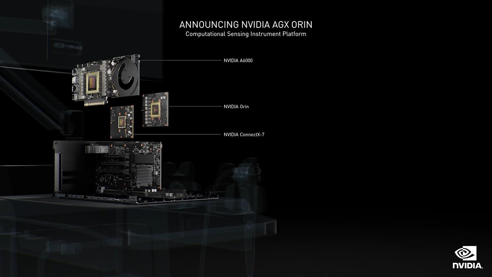W praktyce SOC Orin ma na celu zapewnienie 200 TOP-ów wydajności, dzięki swoim 17 miliardom tranzystorów, przewyższając swojego poprzednika o około siedem razy. Wykorzystuje do tego dwanaście rdzeni ARM Cortex-A78AE oraz rdzeń graficzny na bazie architektury Ampere. Jego integracja w module AGX Orin przejęła postać platformy Computational Sensing Instrument i zawiera w sobie NVIDIA ConnectX-7. System może być również opcjonalnie wyposażony w kartę graficzną RTX A6000 w celu zwiększenia wydajności.