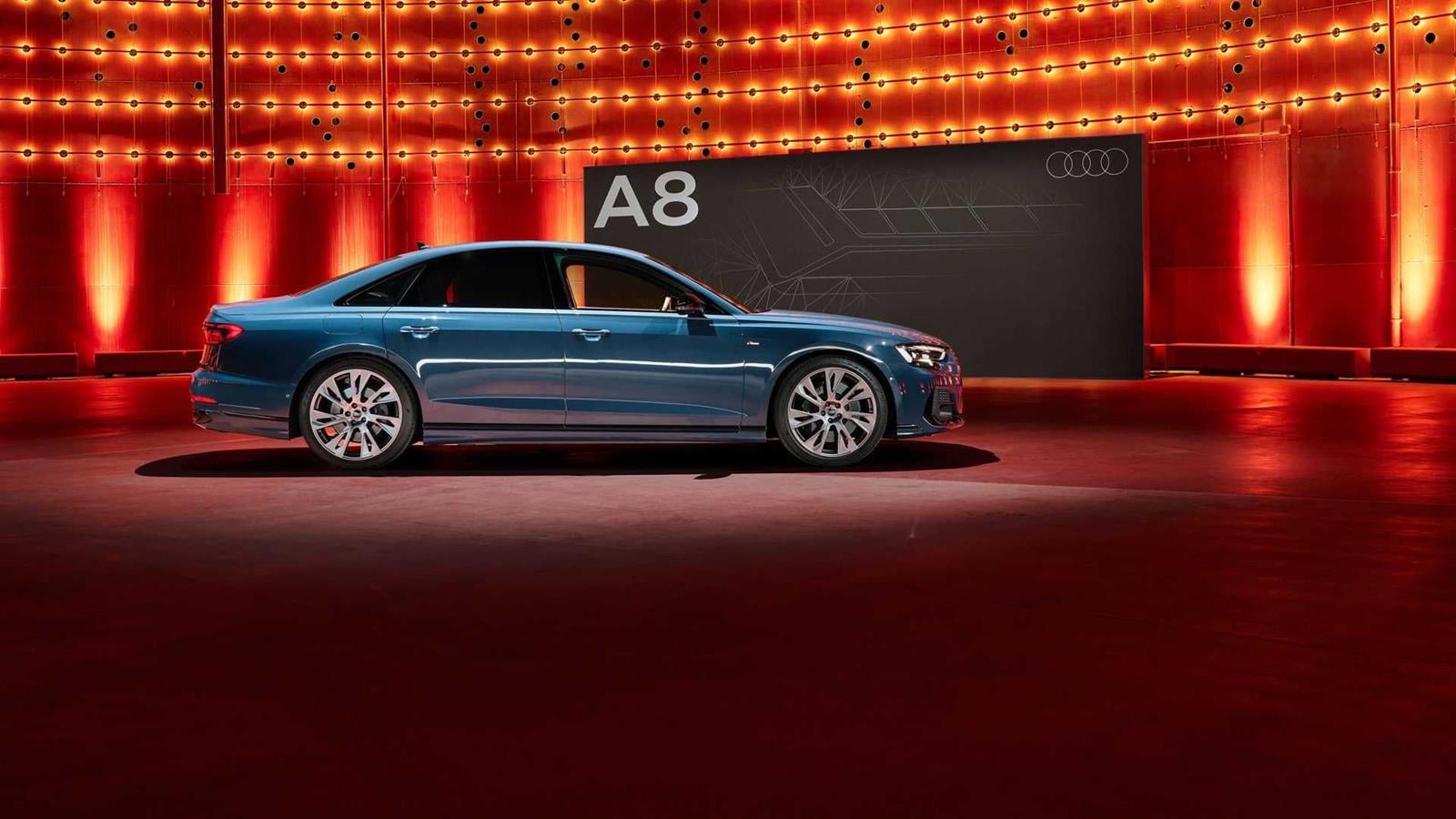 Przechodząc na tył modelu, Audi postawiło na nową grafikę dla cyfrowych świateł OLED w standardzie, która nadaje nieco więcej nowoczesnego sznytu, nawiązując do najnowszych modeli producenta. Ten rywalizujący z Mercedesem Klasy S model doczekał się czterech nowych lakierów metalicznych (District Green, Firmament Blue, Manhattan Grey i Ultra Blue) oraz pięciu matowych (Daytona Grey, Floret Silver, District Green, Terra Grey i Glacier White).