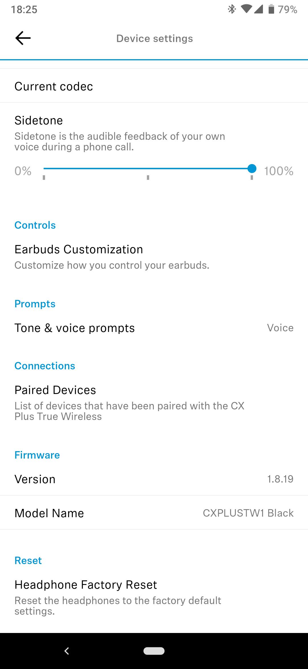 Zdecydowanie najważniejsze elementy sprowadzają się jednak do możliwości nadpisania funkcji co do tego, jak reagują panele dotykowe, choć nie możemy podmienić tego, że regulacja poziomu głośności zachodzi przy przytrzymywaniu palca na słuchawkach. Musimy też docenić opcję całkowitej dezaktywacji paneli dotykowych, dwa tryby skromnego equalizera z regulacją w zakresie od -6 do +6, opcje zapisywania swoich ustawień oraz korzystania z tych przygotowanych przez producenta. Są one jednak na tyle łagodne, że nie zmieniają kompletnie brzmienia. Warto też wspomnieć, że z CX Plus można korzystać, mając tylko jedną słuchawkę (niezależnie którą) w uchu, a drugą w etui.