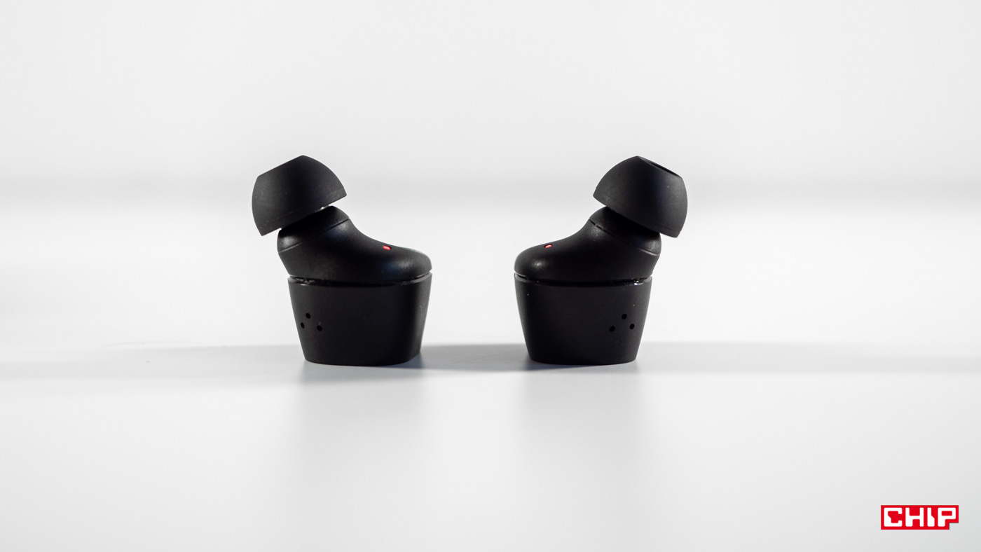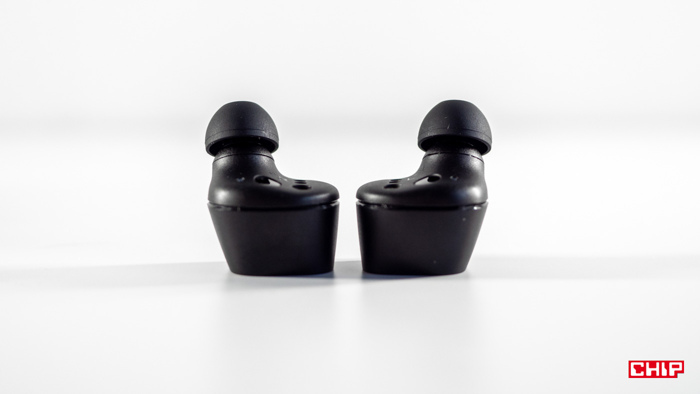Elementy dotykające wewnętrznej strony naszego ucha są obłe i matowe, a te zewnętrzne są już znacznie bardziej surowym kawałkiem plastiku. Wieńczy je płaski, śliski element z tworzywa sztucznego, zdobiony logo producenta, który skutecznie wykrywa dotyk, umożliwiając przyjemne sterowanie funkcjami, o których za chwilę.