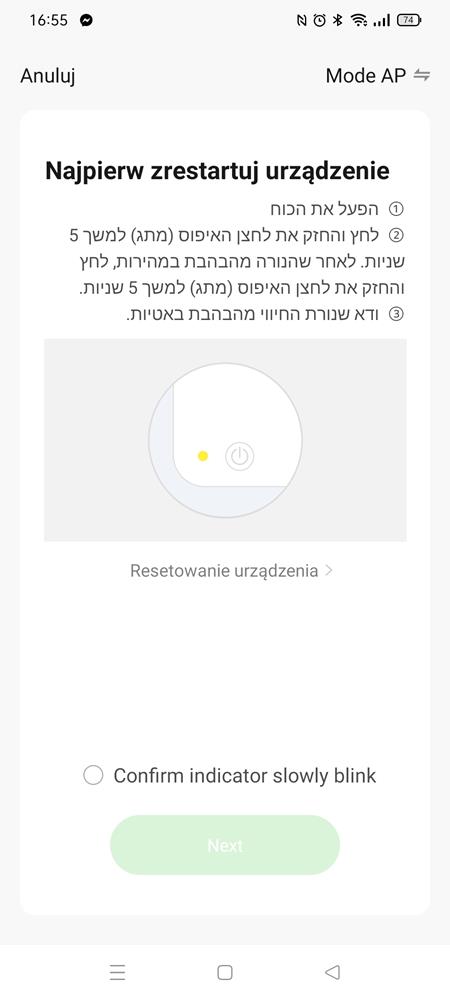 Aplikacja to SmartAI, która do złudzenia przypomina Tuya (jedną z najgorszych appek do robotów, z jakimi miałem do czynienia). Na szczęście nie jest tak źle. Aplikacja jest częściowo przetłumaczona na nasz język, choć samo zarządzanie robotem jest po angielsku (nadal uważam, że lepszy angielski niż tragiczne tłumaczenie polskiego). Muszę tu też dodać, że zespół SmartAI opracowuje polskie tłumaczenie i w najbliższym czasie pojawi się ono w aplikacji. Parowanie jest bardzo łatwo, choć na screenie poniżej znajdziecie część w kompletnie innym języku – nic z tego nie zrozumiecie. Na szczęście instrukcja dobrze wyjaśnia sam proces parowania.