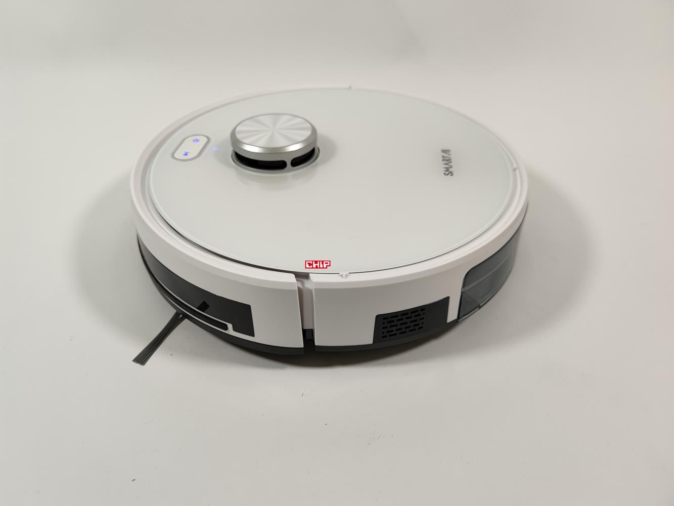 Pod względem wyglądu robot nie wyróżnia się na tle konkurencji. Ma na górze wystającą część z laserem, który służy mu do nawigacji, a poza tym jest cały biały. Jego średnica wynosi 330 mm, a wysokość 101 mm. SmartAI S7 Max jest więc wyższy od robotów bez laserowej nawigacji, ale i tak taka wymiary spokojnie powinny pozwolić na wjechanie pod np. łóżko.