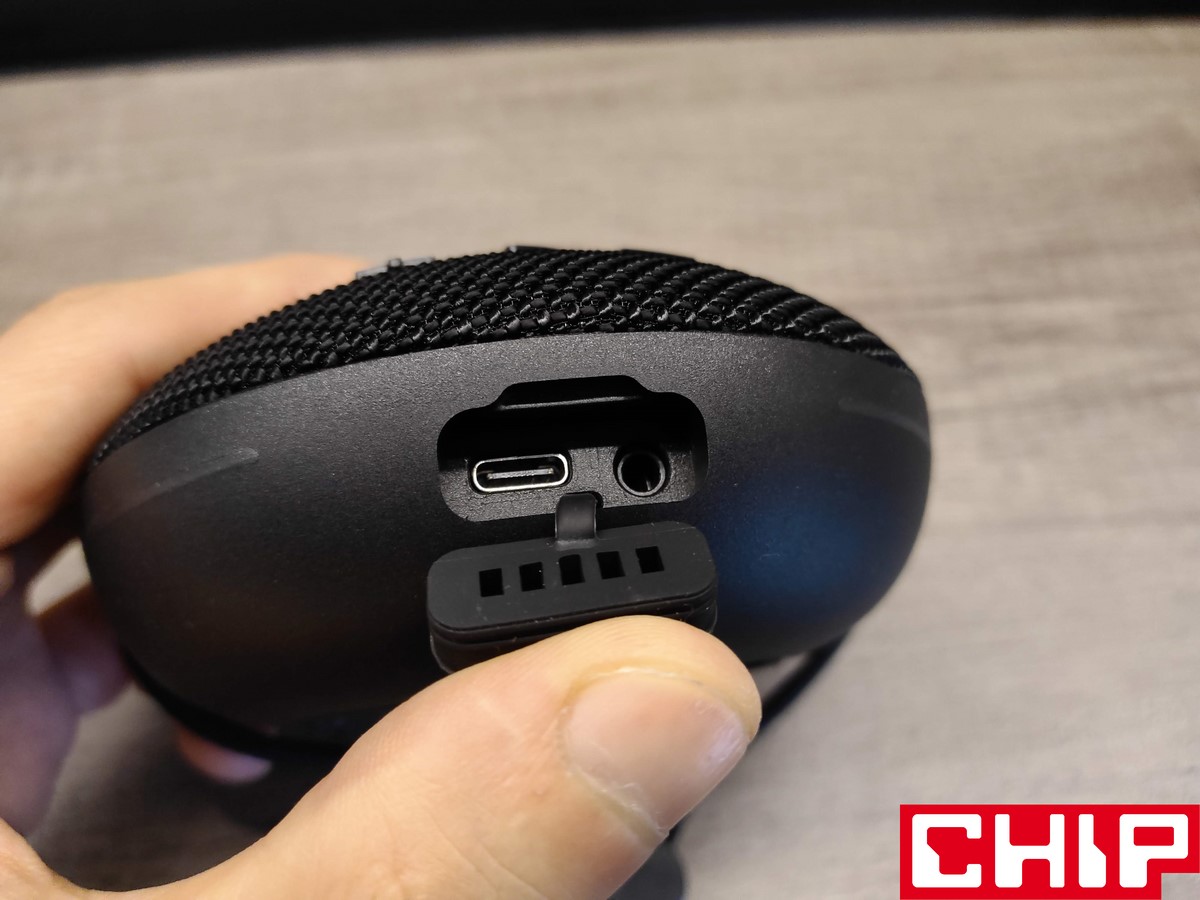Po przeciwległej stronie do przycisków funkcyjnych znalazła się solidna gumowa uszczelka, chroniąca port USB-C oraz AUX (jack 3,5 mm) przed wodą i na tym moglibyśmy skończyć, ale Tronsmart uznał, że świetnym dodatkiem będą dwa podświetlane paski na bokach. Spokojnie jednak – można je w prosty sposób dezaktywować.