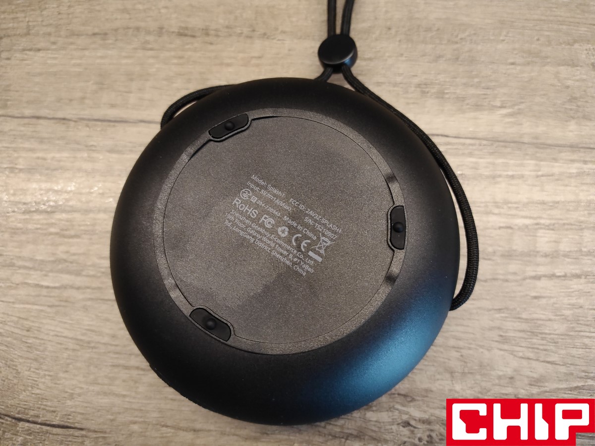 Wykonanie głośnika jest przyzwoite, a przynajmniej tak przyzwoite, jak przystało na sprzęt audio do zgarnięcia za 130 złotych na promocjach. Splash 1 sprowadza się do bardzo spłaszczonej kuli z płaską podstawą, gdzie znalazły się trzy gumowe podkładki antypoślizgowe. Dzięki wymiarom rzędu 112×112×54 mm nawet mniejsza dłoń poradzi sobie z chwyceniem głośnika i nie będzie się specjalnie męczyła, bo Splash 1 waży tylko 260 gramów.