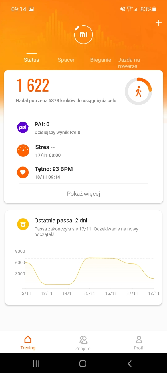 - Jest licznik kroków – działa i liczy je w miarę poprawnie.