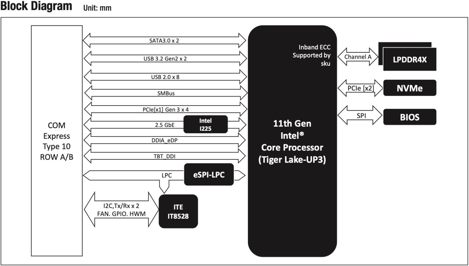 Te procesory mogą być połączone z maksymalnie 16 GB pamięci LPDDR4x-4266 i maksymalnie 256-gigabajtowym dyskiem SSD NVMe na bazie dwóch linii PCIe. W zależności od wersji, Aaeon dostarcza swój produkt z chłodzeniem aktywnym, pasywnym lub samą płytą.