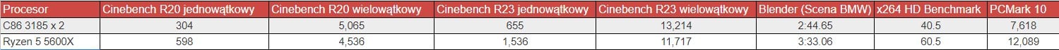 Sześciordzeniowy Ryzen 5 5600X okazał się wydajniejszy o prawie 97 i 135% kolejno w Cinebench R20 i R23 (test jednowątkowy), ale para Hygon C86 3185 przewyższyła jego wydajność w operacjach wielowątkowych (kolejno o 12 i 13%). Zdołała go również wyprzedzić w Blenderze i teście x264 HD Benchmark o odpowiednio 23 i 33%. Przegrała sromotnie w 3DMark (o 59%), ale w grach wypadała przyzwoicie w połączeniu z RTX 3080 Ti.