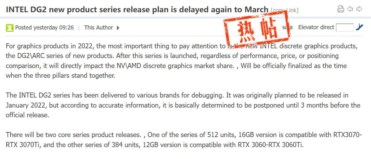 Finalnie jednak Intel ma oprzeć całą swoją ofertę na dwóch GPU – DG2-512 (SOC1) oraz DG2-128 (SOC2), przygotowując na ich bazie stosowne warianty. Zgodnie z najnowszymi plotkami Intel przesunie premierę rynkową swoich kart graficznych na koniec pierwszego kwartału, bo aż do marca. Wtedy zadebiutują ponoć karty z tymi dwoma wspomnianymi GPU. Ponoć partnerzy Intela (firmy pokroju MSI, ASUSa, czy Gigabyte, zajmujące się produkcją niereferencyjnych modeli) zaczęli już przyjmować pierwsze dostawy procesorów graficznych ARC Alchemist (DG2), aby zdążyć stworzyć własne karty.