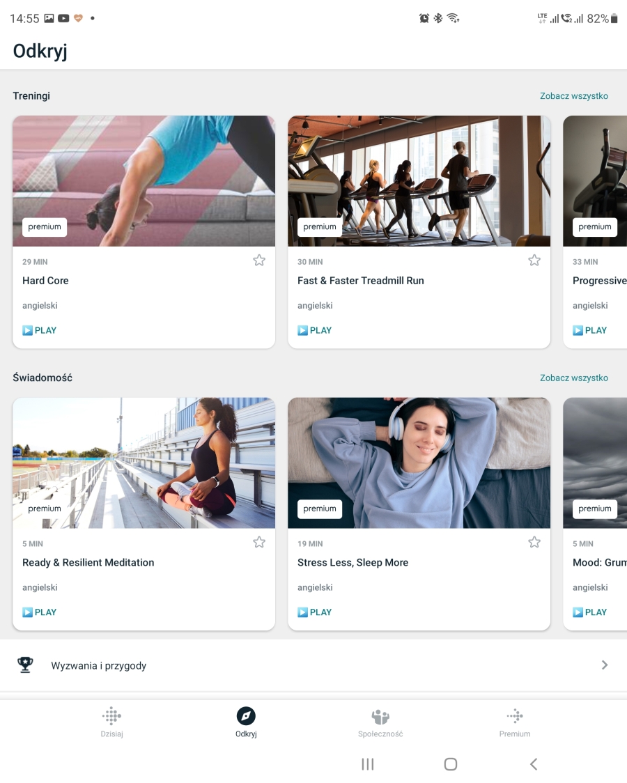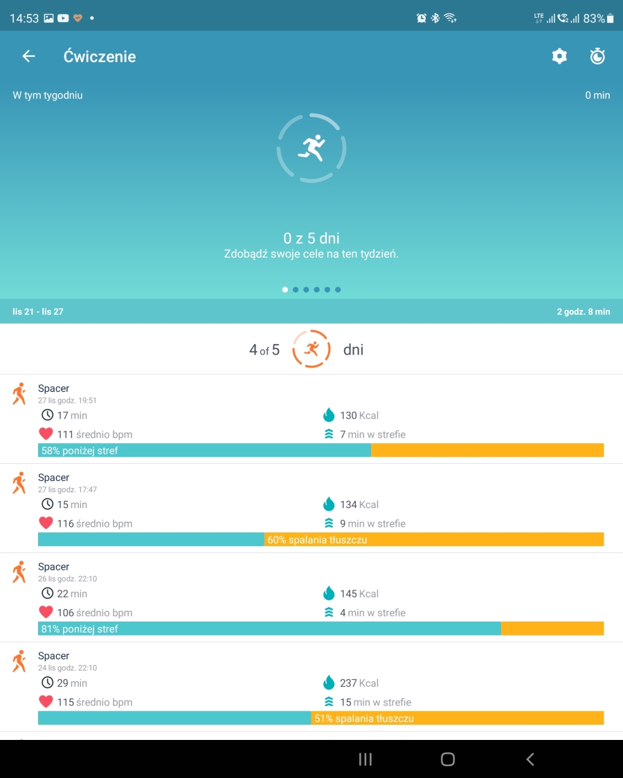 Jeśli to za mało, to Fitbit Charge może zamienić się w naszego trenera. Aplikacji mobilna daje nam dostęp do bazy różnego rodzaju ćwiczeń. Biegowych, aerobowych, siłowych… które są dopasowywane do naszych możliwości i postępów. Więc na dobrą sprawę, zamiast inwestować w trenera personalnego, wystarczy nam sama opaska.