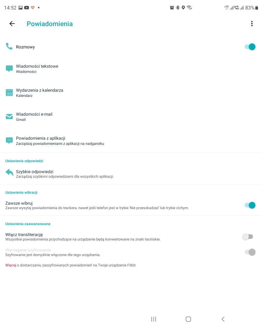 Na pierwszy rzut oka skromnie wyglądają też powiadomienia. Co by nie powiedzieć, że biednie. Ale w praktyce Fitbit Charge 5 radzi sobie z nimi lepiej niż nie jeden smartwatch. Powiadomienia ze wszystkich aplikacji są wyświetlane prawidłowo. Klikając dowolne z nich zobaczymy pełną treść wiadomości, czy np. odpowiedzi na wpis na Twitterze. Na każdą z nich możemy odpowiedzieć korzystając z szablonów, jakie mamy dostępne w aplikacji mobilnej (możemy stworzyć własne), wpis polubić lub otworzyć go na ekranie smartfonu. Powiedzmy sobie szczerze, tego nie oferują zegarki Huaweia za dwa razy wyższą cenę. Powiadomienia to jedna z funkcji Fitbit Charge, które może nie wygląda efektownie, ale działa jak złoto.
