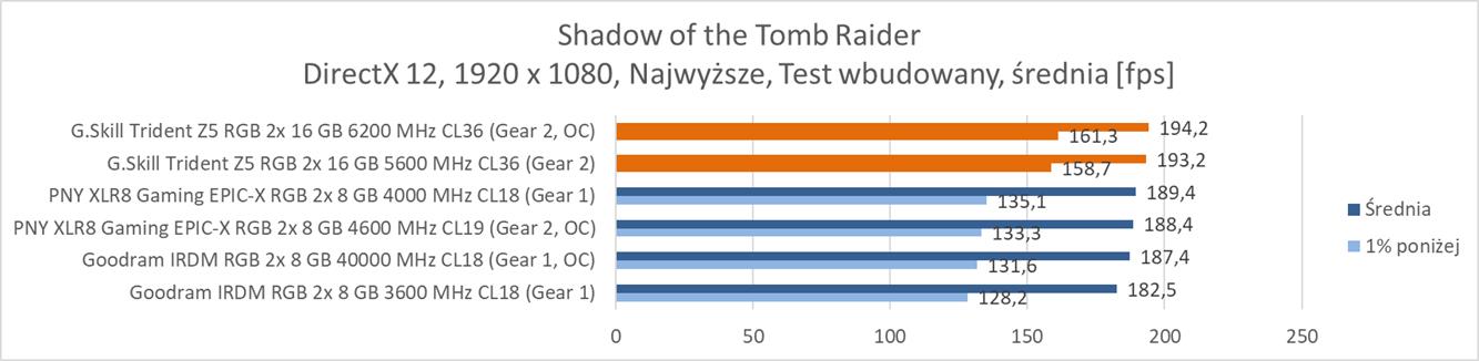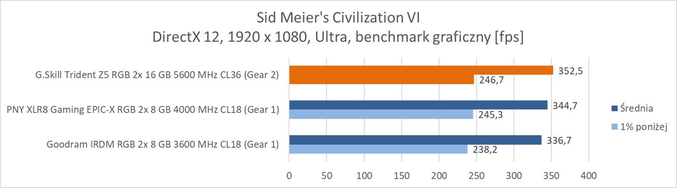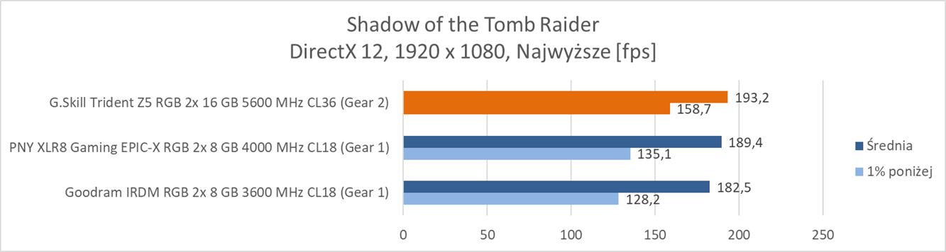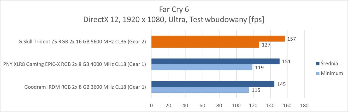 Różnice w stosunku do pamięci 4000 MHz CL18 (Gear 1) nie są jakieś wybitnie wysokie. W programach są one minimalne (oprócz AIDA64 i 7-zip), w grach widać już większą przewagę DDR5, choć nadal nie jest ona jakoś wybitnie wielka.