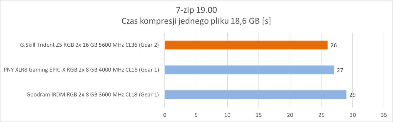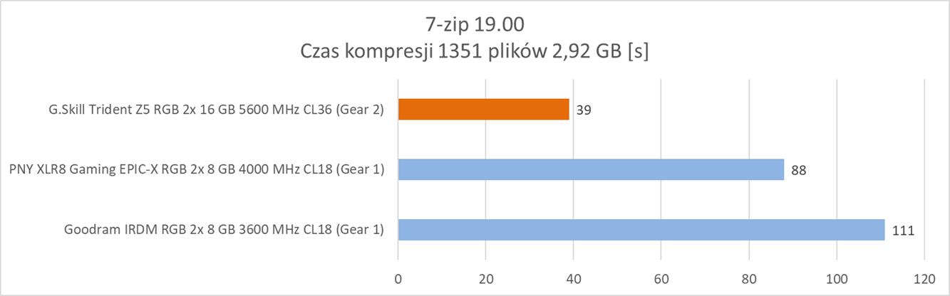 Sama wydajność jest wyższa od DDR4, ale nie są to jakieś wybitnie wielkie różnice. Najbardziej widoczne są one w grach, gdzie rzeczywiście można zyskać sporo fps i programach typu AIDA64 czy 7-zip. Tutaj z pewnością sporą zasługą jest taktowanie 5600 MHz przy CL36, podczas gdy konkurencja często oferuje kości 5200 MHz CL38. Warto też zwrócić uwagę na możliwości OC, bowiem naprawdę łatwo możecie zyskać dodatkowe 600 MHz.