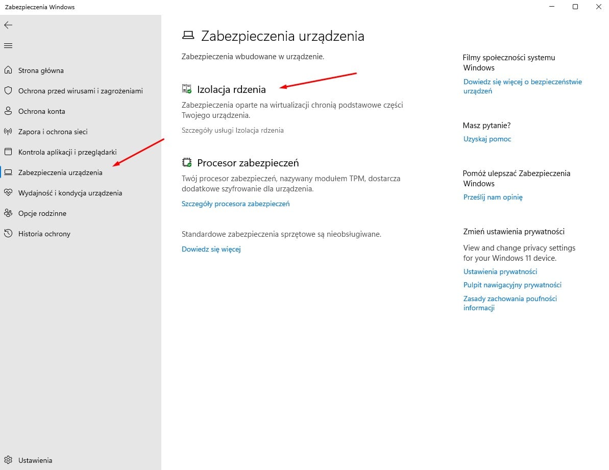 - Dezaktywacja opcji “Integralność pamięci”