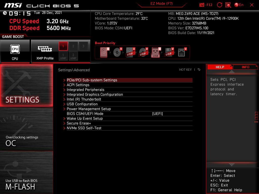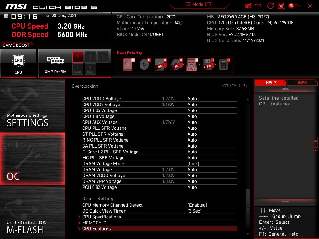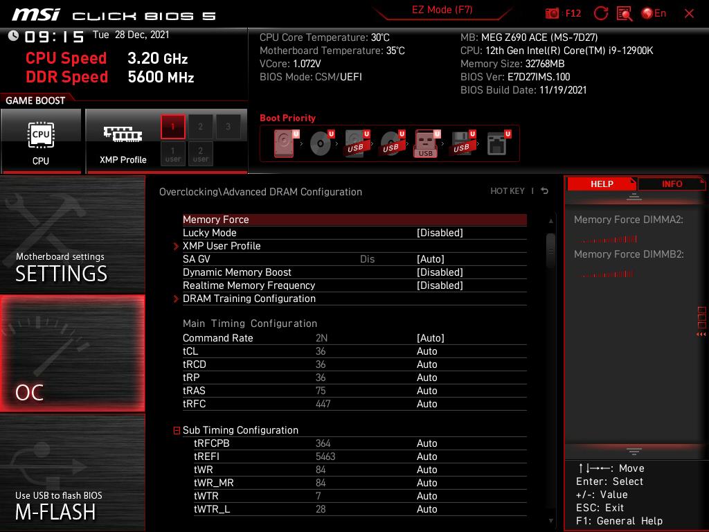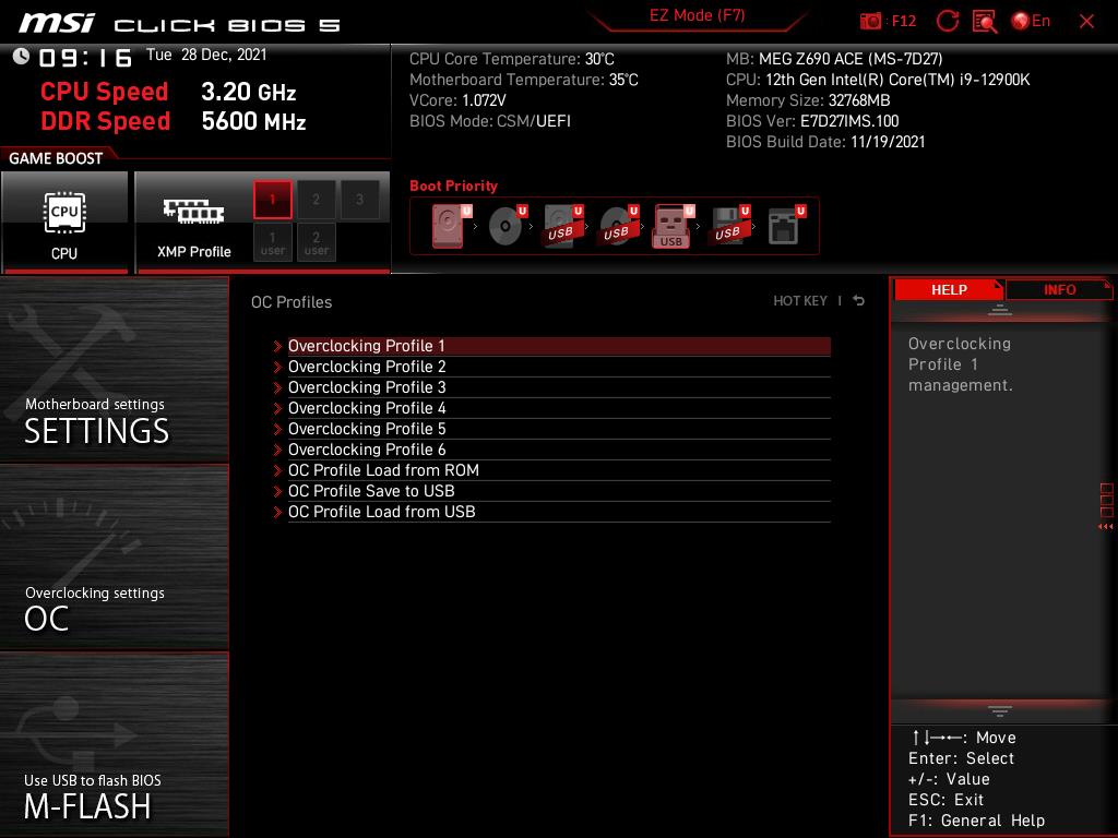 MSI MEG Z690 ACE ma cztery sloty na pamięci RAM DDR5. Maksymalna pojemność może więc wynosić 128 GB, a prędkość 6666 MHz. Całość wspiera profile XMP, więc tutaj nie powinno być problemów z szybkim ustawieniem pamięci.