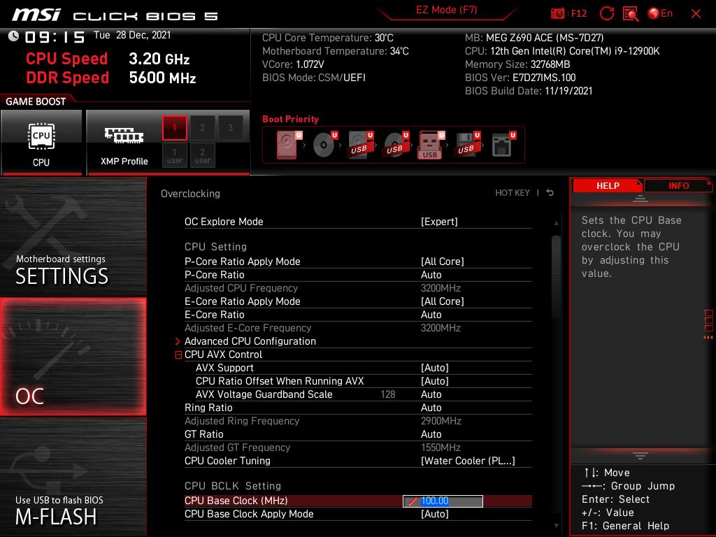 Testy przeprowadziłem przy domyślnych ustawieniach BIOS – włączyłem jedynie profil XMP pamięci. Pamięci działały w trybie Gear 2, a wybrane chłodzenie to oczywiście cieczą.