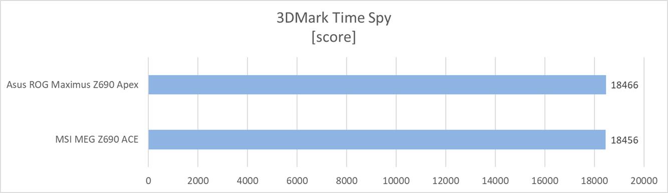 3DMark pozwala na ocenienie wydajności danego zestawu w środowisku 3D. Fire Strike wykorzystuje API DirectX 11, a Time Spy DirectX 12. Są to benchmarki często wykorzystywane np. w testach kart graficznych. Na wykresach możecie zobaczyć całkowity wynik uzyskany przez sprzęt.