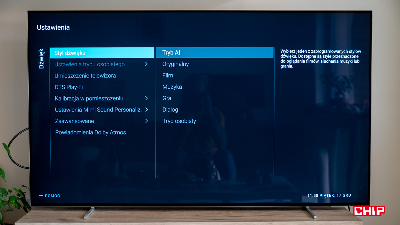Doskonały kontrast, świetna głęboka czerń i bardzo dobre odwzorowanie kolorów to zdecydowanie plusy tego telewizora, Philipsowi względem poprzednich lat udało się też poprawić płynność ruchu. To, co trzeba uwzględnić przy ustawieniu to na pewno dostosowanie jasności do własnych preferencji i specyfiki pokoju. To telewizor, który może zaoferować wręcz referencyjne odwzorowanie kolorów, ma 99% pokrycie palety barw. Generalnie to jeden z tych OLED-ów oferujących topową jakość ekranu, a w dodatku obecnie jego cena nie odbiega o konkurentów. W zależności od trybów obrazu lub też kalibracji jesteśmy w stanie uzyskać takie efekty, jakie chcemy – bardzo naturalny, rzeczywisty zgodny z wizją reżysera obraz, albo też obraz gładki, lśniący korzystając z trybu VIVID Philipsa.