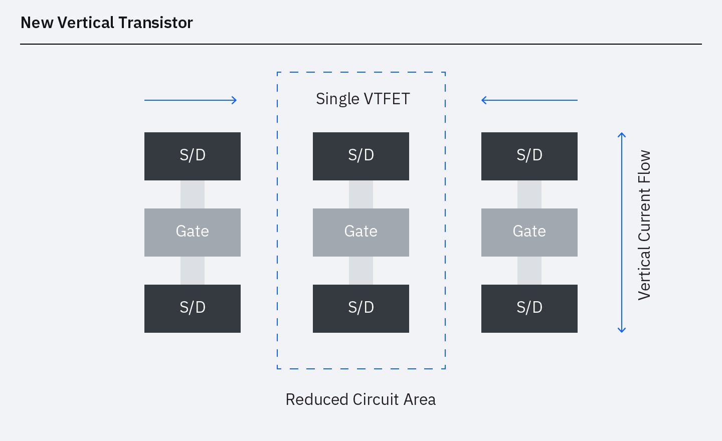 VTFET jest zupełnie nowym sposobem projektowania tranzystorów, który umieszcza je nie równolegle, a prostopadle do matrycy krzemowej, umożliwiając ich skalowanie wzdłuż osi Z, a nie zajmując cenne miejsce na krzemie. Pozwala to producentom m.in. na zmniejszenie liczby komponentów wymaganych do stworzenia funkcjonalnego tranzystora, bo z VTFET unikają m.in. potrzeby stosowania izolatorów między tranzystorami. To z kolei pozwala na umieszczenie ich bliżej siebie. Takie podejście dodatkowo umożliwia bardziej naturalne zasilanie układów, w których prąd naturalnie płynie pionowo, zamiast poziomo, co z kolei uwolni producentów od ograniczeń w skalowaniu poziomym.