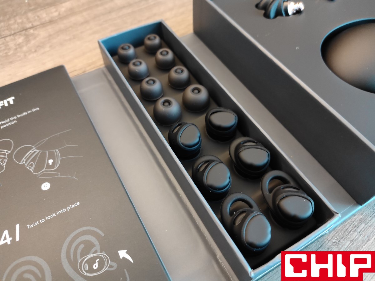 Dzięki czterem parom gumek i stabilizatorów, każdy powinien znaleźć idealną konfigurację, aby Liberty 3 Pro zarówno trzymały się pewnie w uszach nawet podczas ruchu, jak i gwarantowały wysoką wygodę. O ile osobiście nie miałem problemu z tym pierwszym, bo po odpowiednim wsadzeniu i przekręceniu słuchawek w uszach Liberty 3 Pro za nic w świecie Wam nie wypadną nawet podczas sportu, to o komfort walczyłem długo, ale poległem.