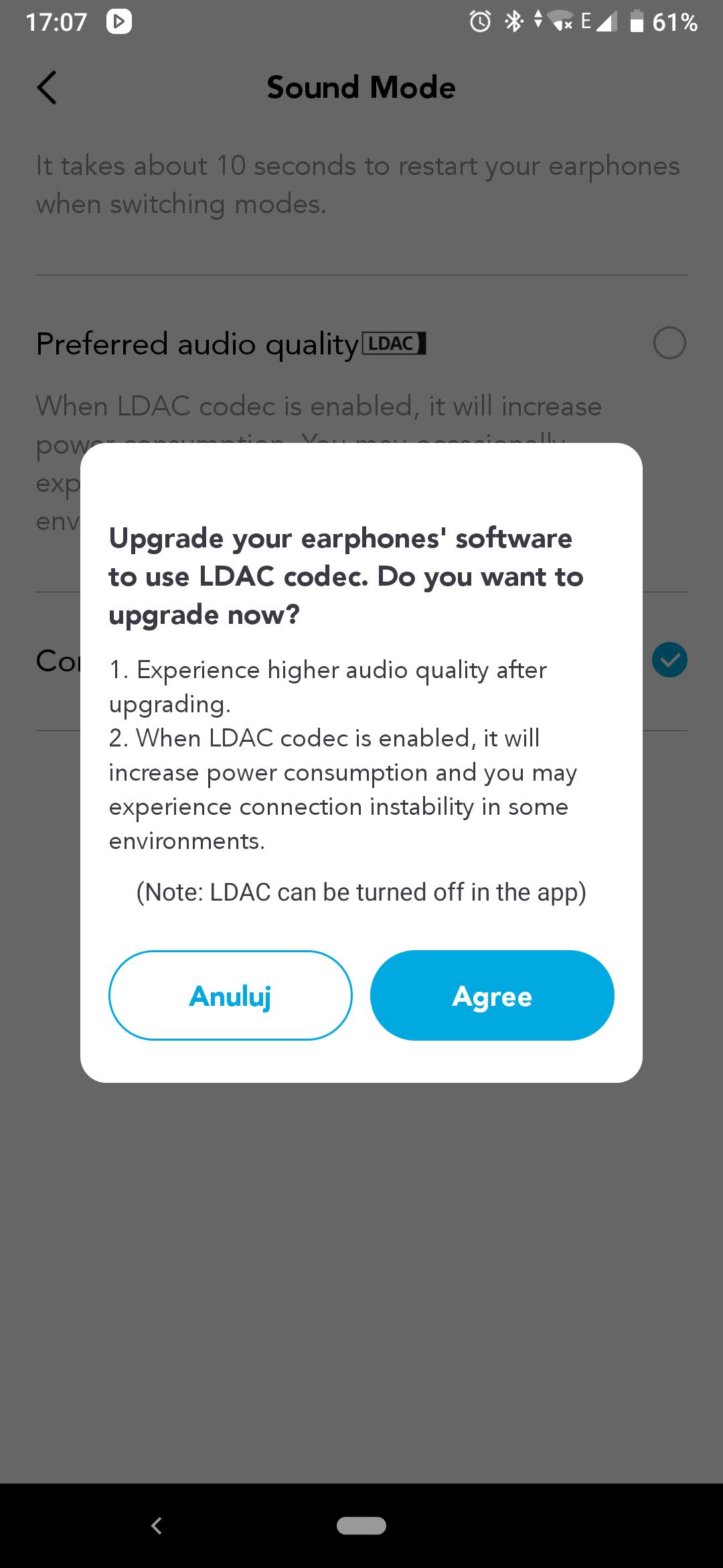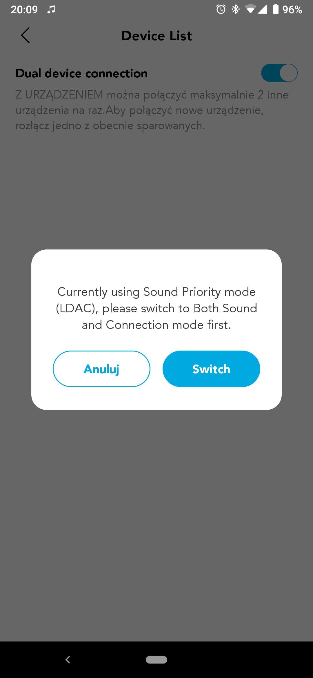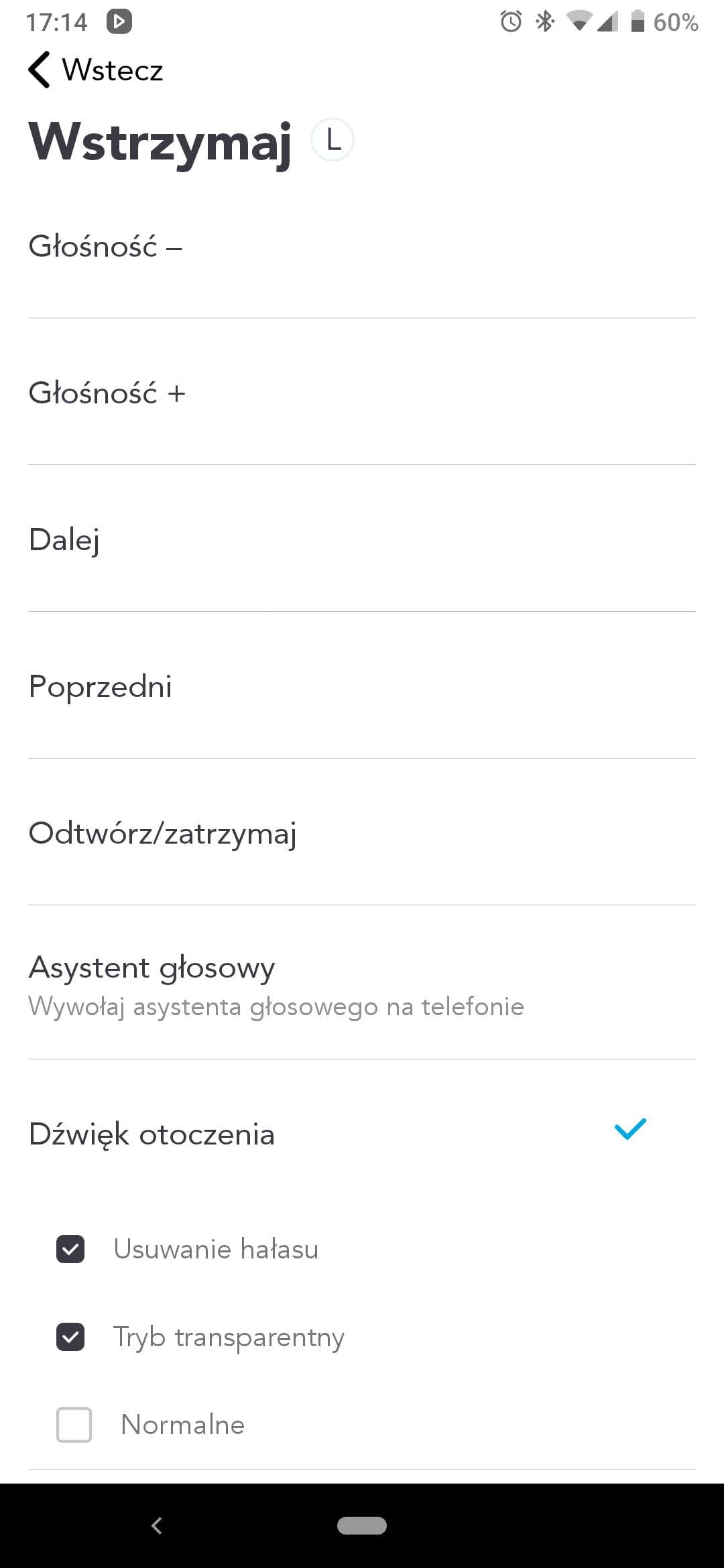 To ostatnie menu jest zdecydowanie najważniejsze, bo pozwala Wam wybrać między najlepszą jakością (aktywuje kodek LDAC od Sony), a wyważeniem jakości ze stabilnością połączenia. Ten drugi tryb pozwala m.in. na aktywację sztucznie poszerzanej sceny w ramach efekt 3D Surround Sound oraz funkcji Multipoint Paring, dzięki czemu połączycie dwa urządzenia z Liberty 3 Pro jednocześnie poprzez Bluetooth 5.2 (lub starsze). Warto też wspomnieć, że możecie też korzystać z jednej słuchawki.