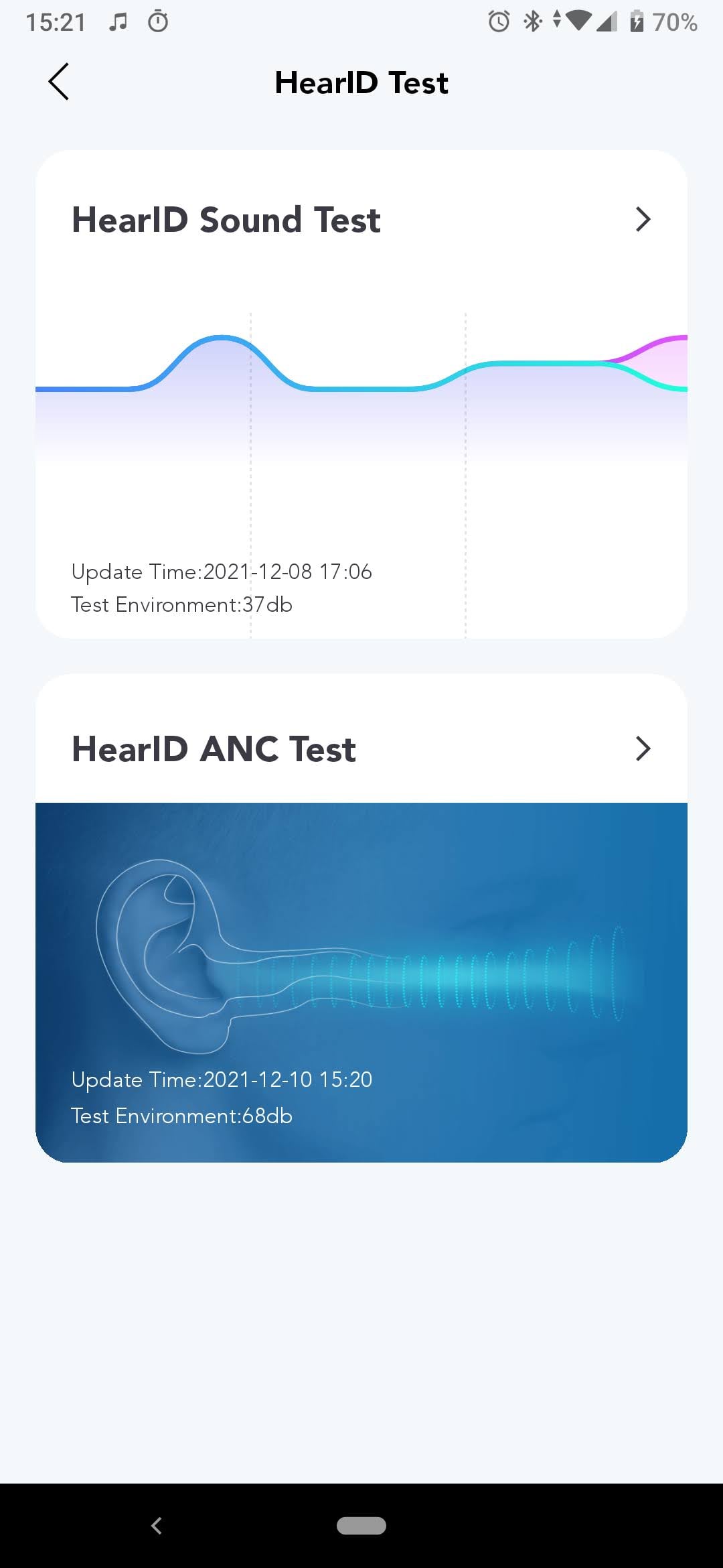 Z pozostałych opcji wartych uwagi zdecydowanie należy wyróżnić rozbudowane ustawienia paneli dotykowych z opcją dezaktywacji łącznie czterech niezależnych funkcji, dezaktywacji/aktywacji czujnika obecności Liberty 3 Pro w uszach i dwóch testów. Jeden dotyczy poziomu dopasowania słuchawek, na podstawie którego będziecie mogli dopasować gumki i skrzydełka, a drugi bezpośrednio Waszego słuchu. Tak zwane HearID najpierw postawi Was przed kilkuminutowym sprawdzianem tonów, które będziecie w stanie usłyszeć i na podstawie wyniku dostosuje brzmienie słuchawek idealnie pod Was.