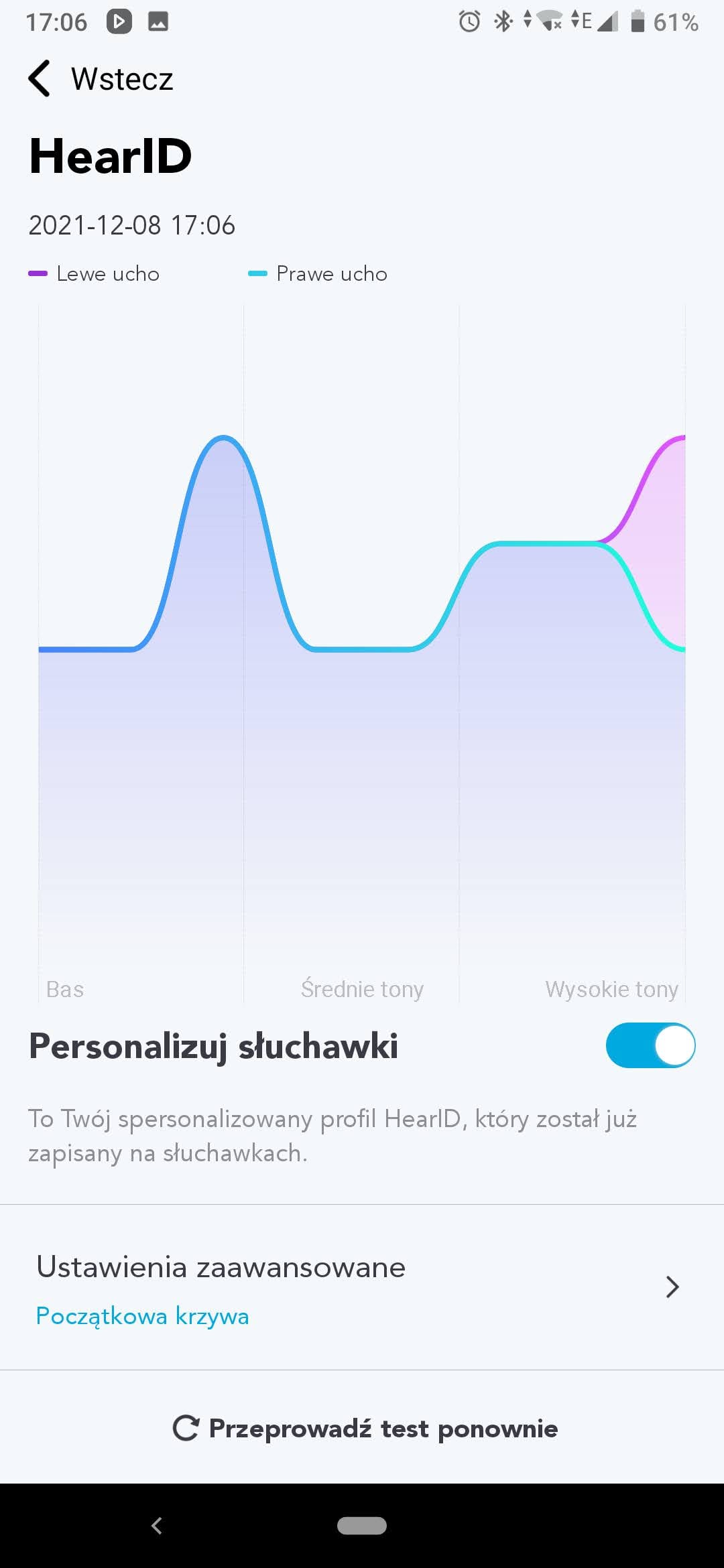 Mogę jednak zapewnić, że jeśli zwracacie uwagę na jakość brzmienia, to Liberty 3 Pro pozytywnie Was zaskoczą. Mnie przynajmniej zdołały, bo akurat miałem możliwość porównać je z Sennheiser Momentum True Wireless 2 za około 1000 złotych. Do tej pory uważam te drugie za najlepsze pod kątem neutralnego brzmienia, ale znów do największych purystów audio nie należę i dlatego z otwartymi ramionami przywitałem strojenie w modelu od Soundcore. Trudno to określić, bo oba modele brzmią wręcz cudownie, ale po prostu Liberty 3 Pro przemawiały do mnie bardziej i to zwłaszcza z ustawieniami equalizera zgodnymi z testem HearID. Warto jednak zadbać o to, aby w equalizerze przytłumić tony wysokie, bo te są zbyt podbite nawet po strojeniu podsuwanym przez wspomniany test.