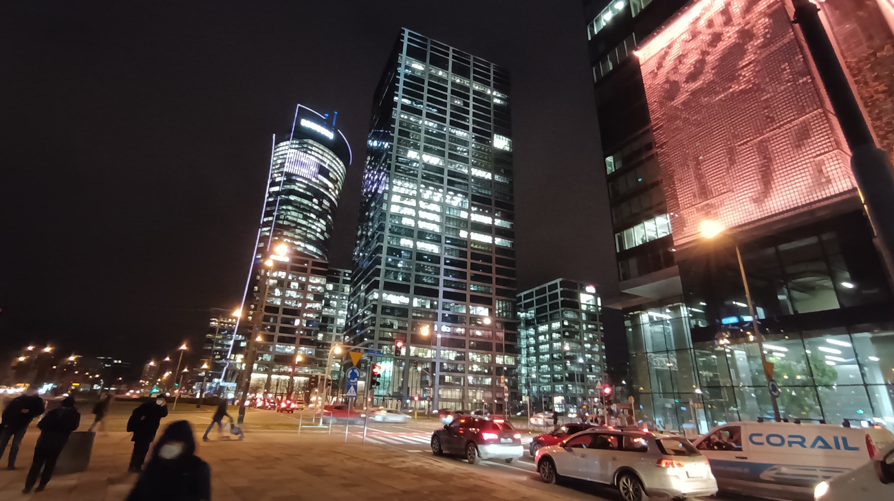 Po zmroku trzeba uważać na rozmazane ujęcia, ale i tak jakość zdjęć z aparatu podstawowego jest zadowalająca. Zwłaszcza w trybie nocnym szczegółów jest nadspodziewanie dużo. Niestety, nie można tego samego powiedzieć o zdjęciach z aparatu szerokokątnego, zwłaszcza, że nie możemy w jego przypadku włączyć trybu nocnego… Tu producent się nie popisał. Zdjęcia są ciemne i obdarte z detali.