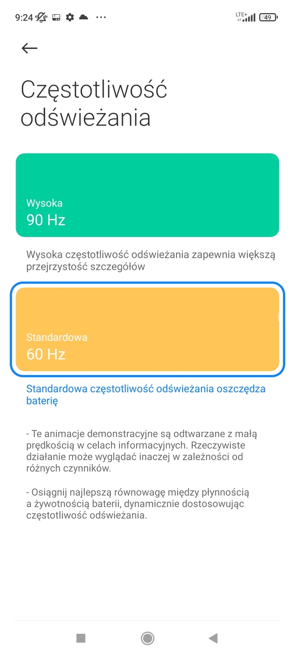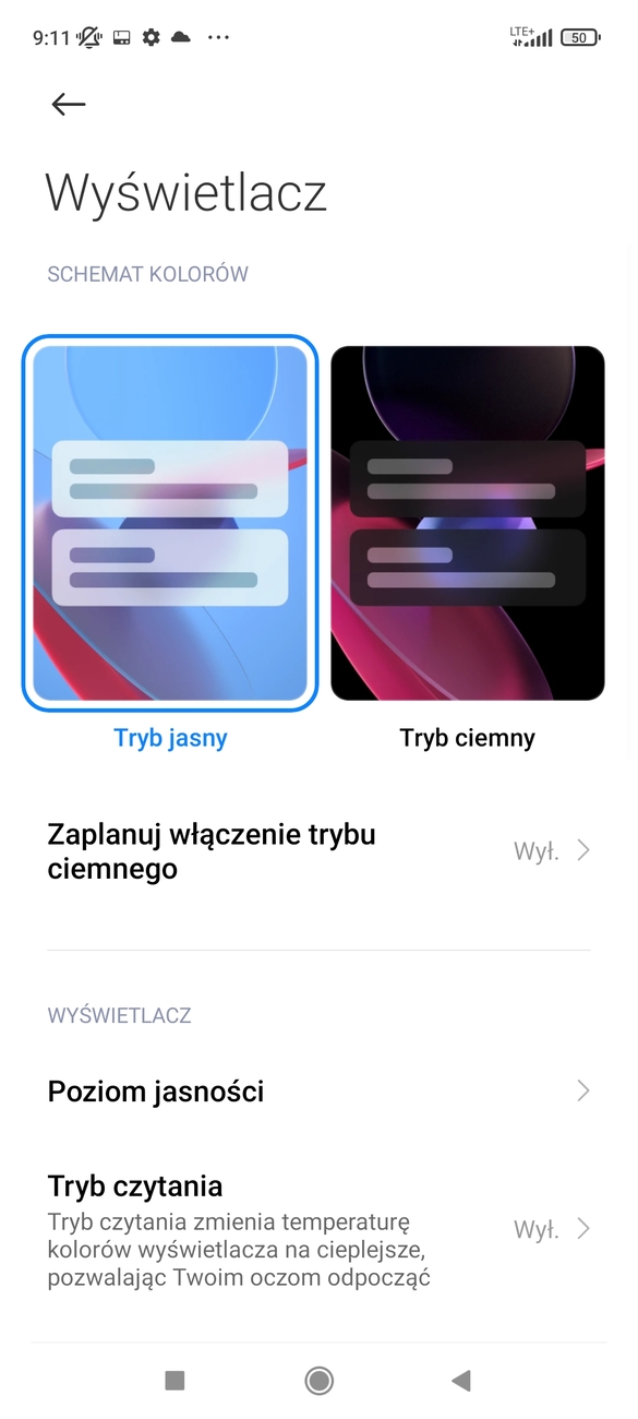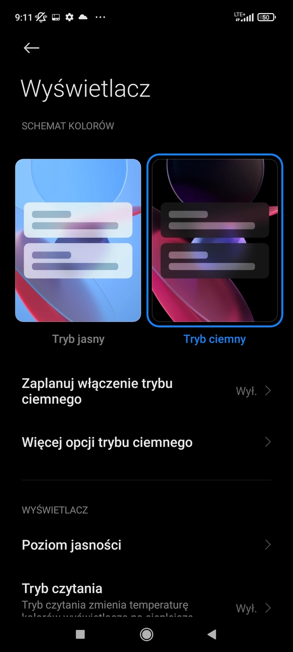 W ustawieniach możemy włączyć filtr światła niebieskiego i tryb ciemny dla menu, oraz regulować częstotliwości odświeżania i wybrać schemat kolorów najbliższy naszym preferencją.